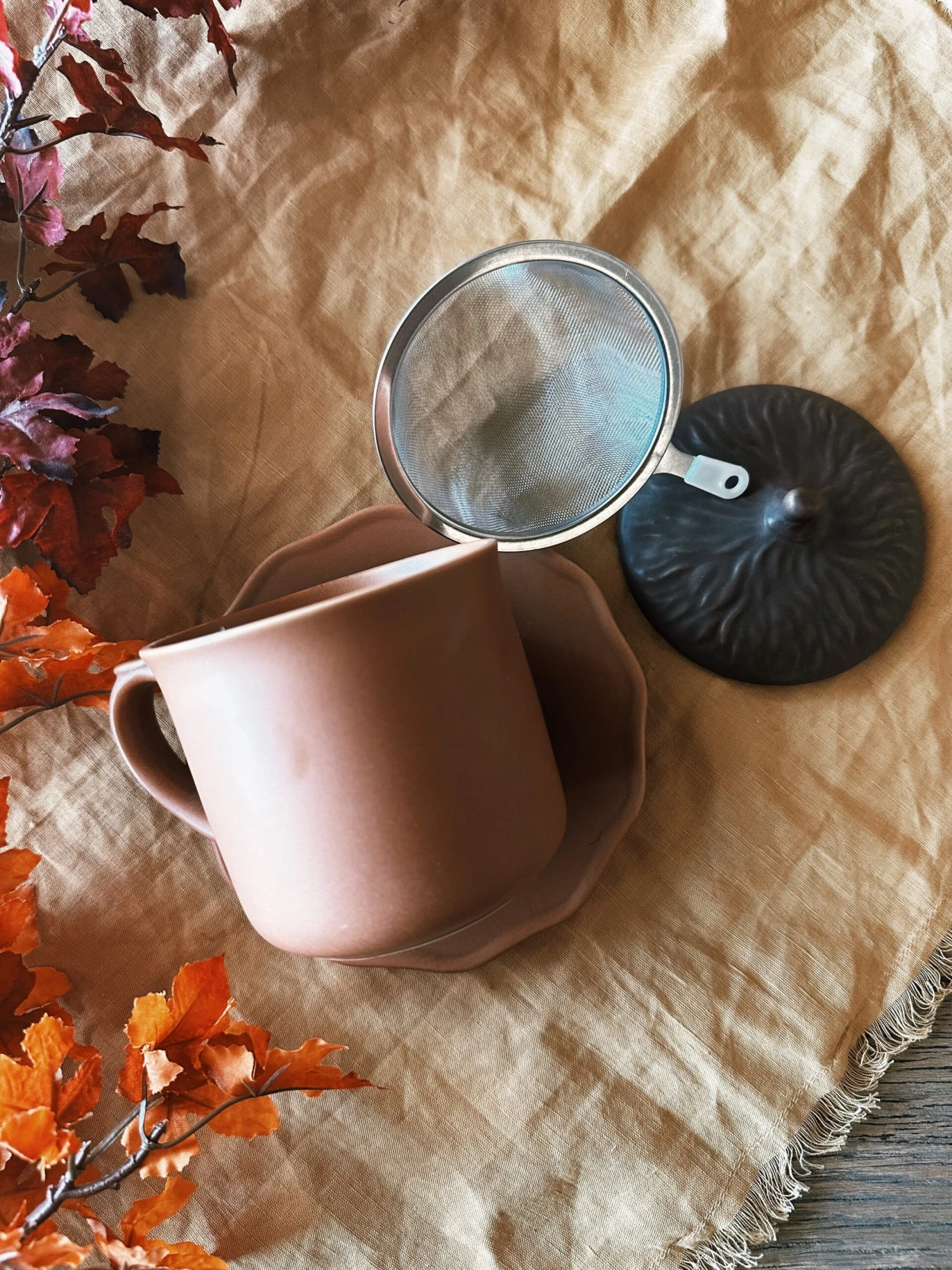 Acorn Mug & Saucer w/ Strainer & lid