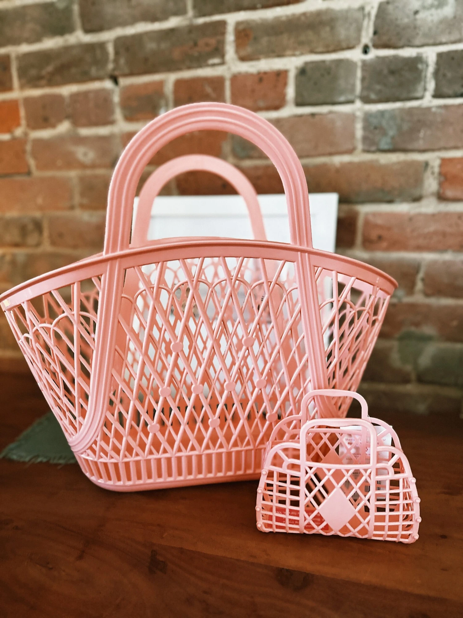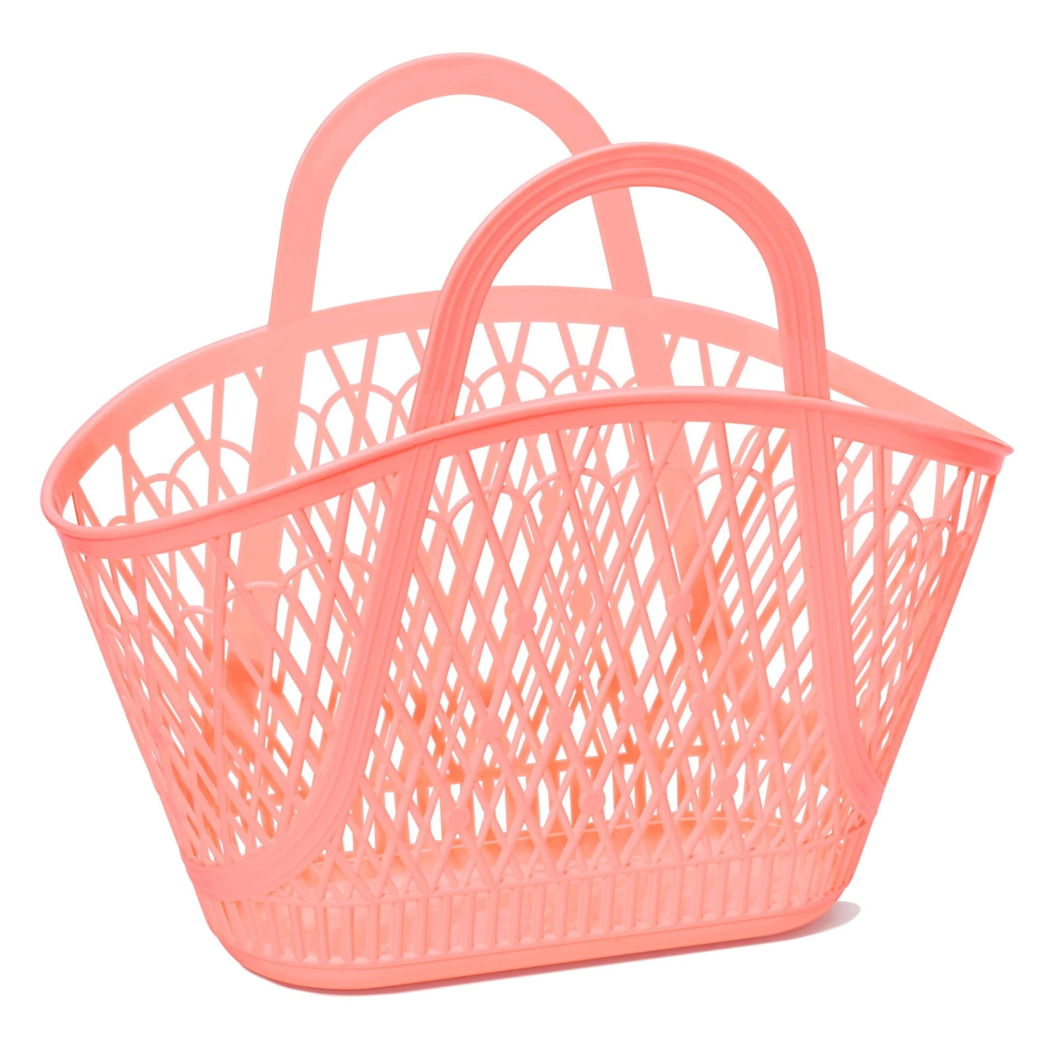 A traditional vintage style market basket with its big wide handles, large capacity and open criss-cross pattern. Designed with the romantic in mind it is probably the most feminine shape in the Sun Jellies collection. Picture carrying it over your arm on a beautiful, sunny day while browsing the local markets for tasty treats and flowers.