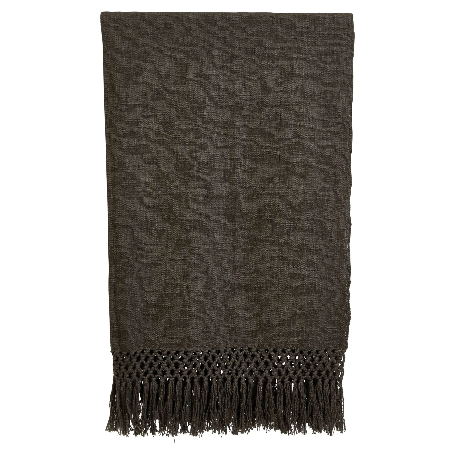 Fold this cotton throw and lay it over a seat back for added decor. The warm charcoal color along with crocheted ends and fringe will add a soft accent to any space. It is also ideal for an added touch of decor at the end of a bed or displayed neatly over the arm of a sofa.