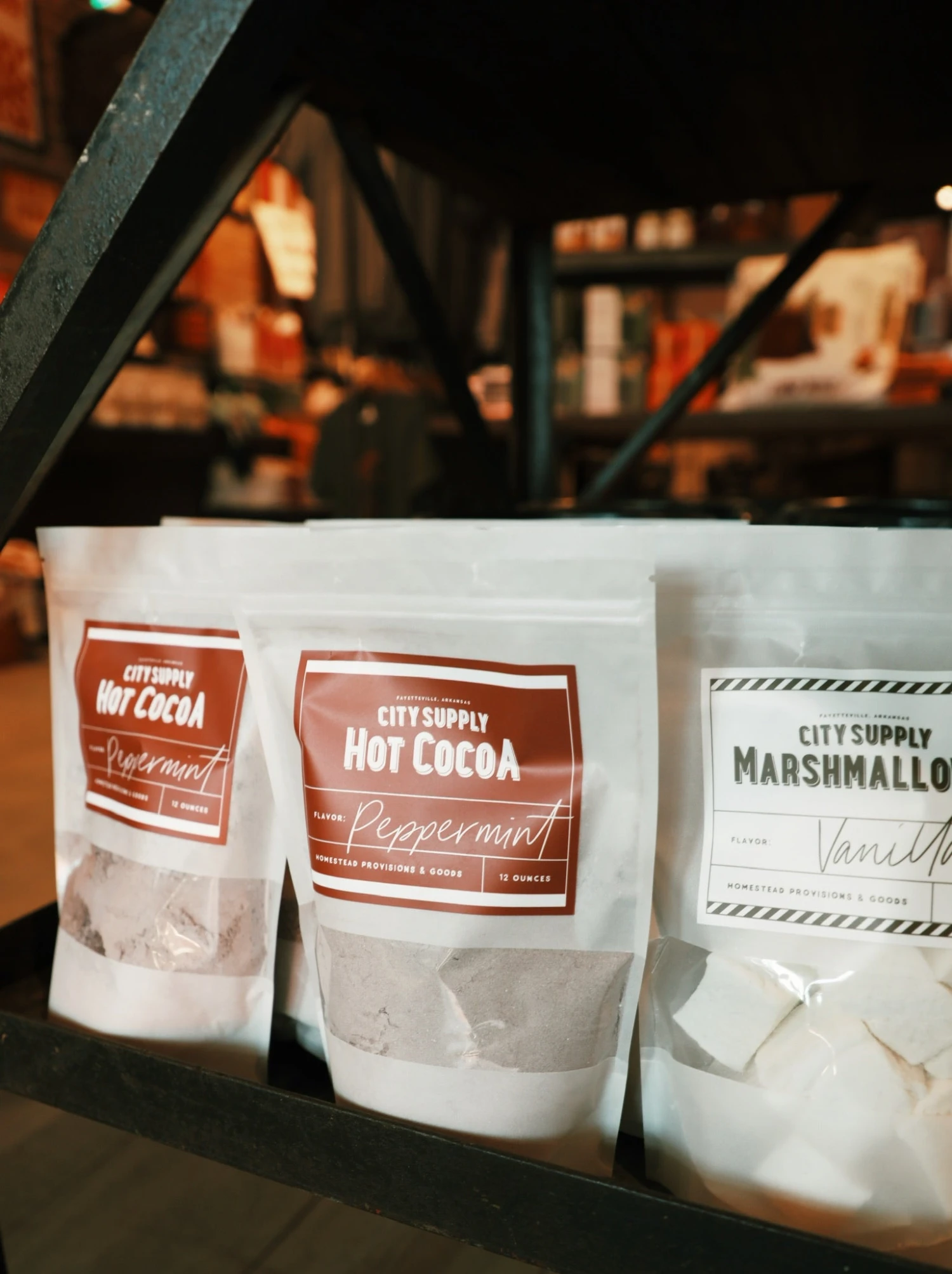 Each bag of hot cocoa is hand mixed and packaged at the Little Rock Arkansas Loblolly Kitchen.