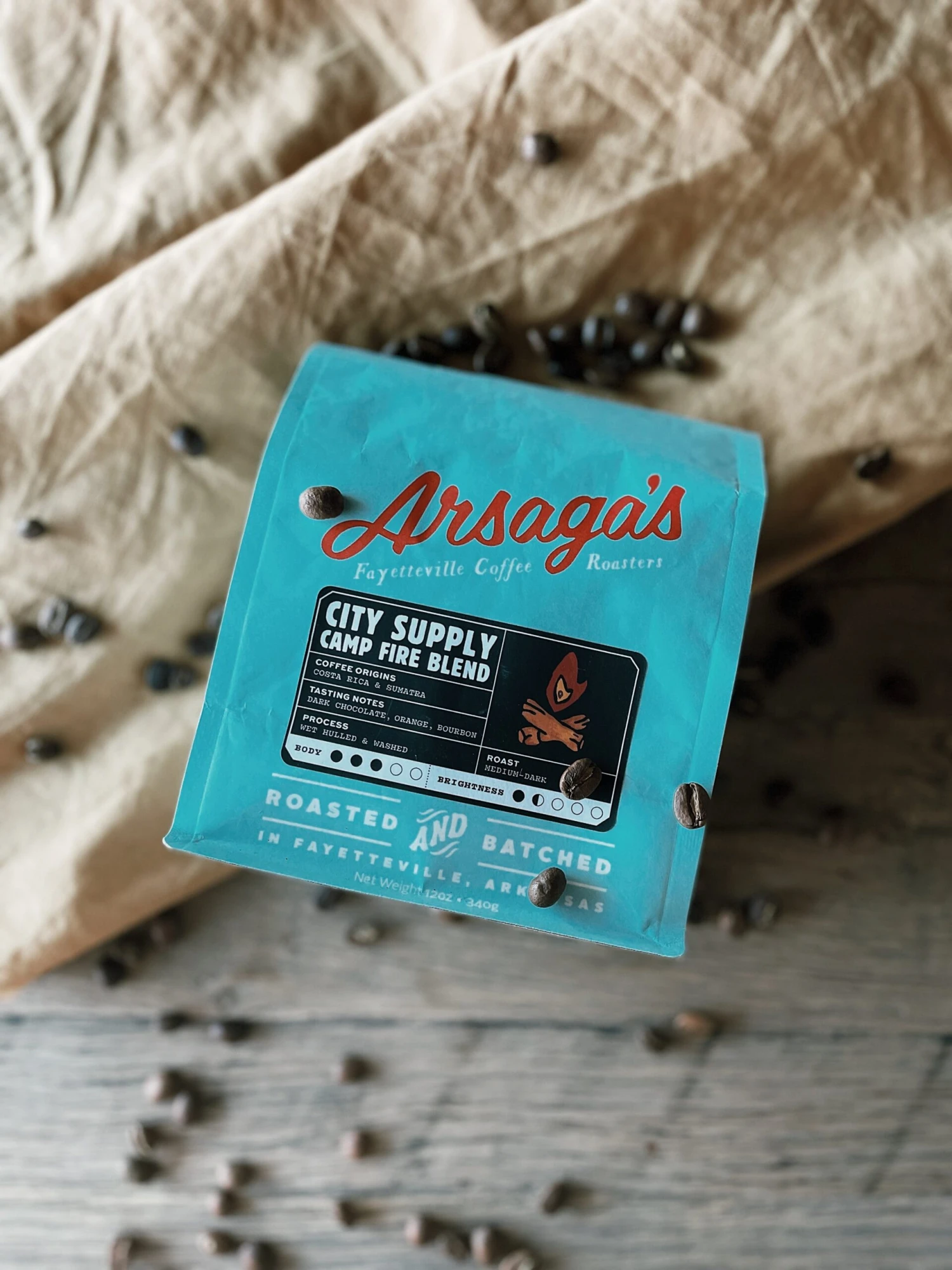 Chase curated this blend of coffee with local coffee entrepreneurs Arsaga’s Coffee to create a traditional dark coffee with notes of bourbon to be sipped by the campfire.