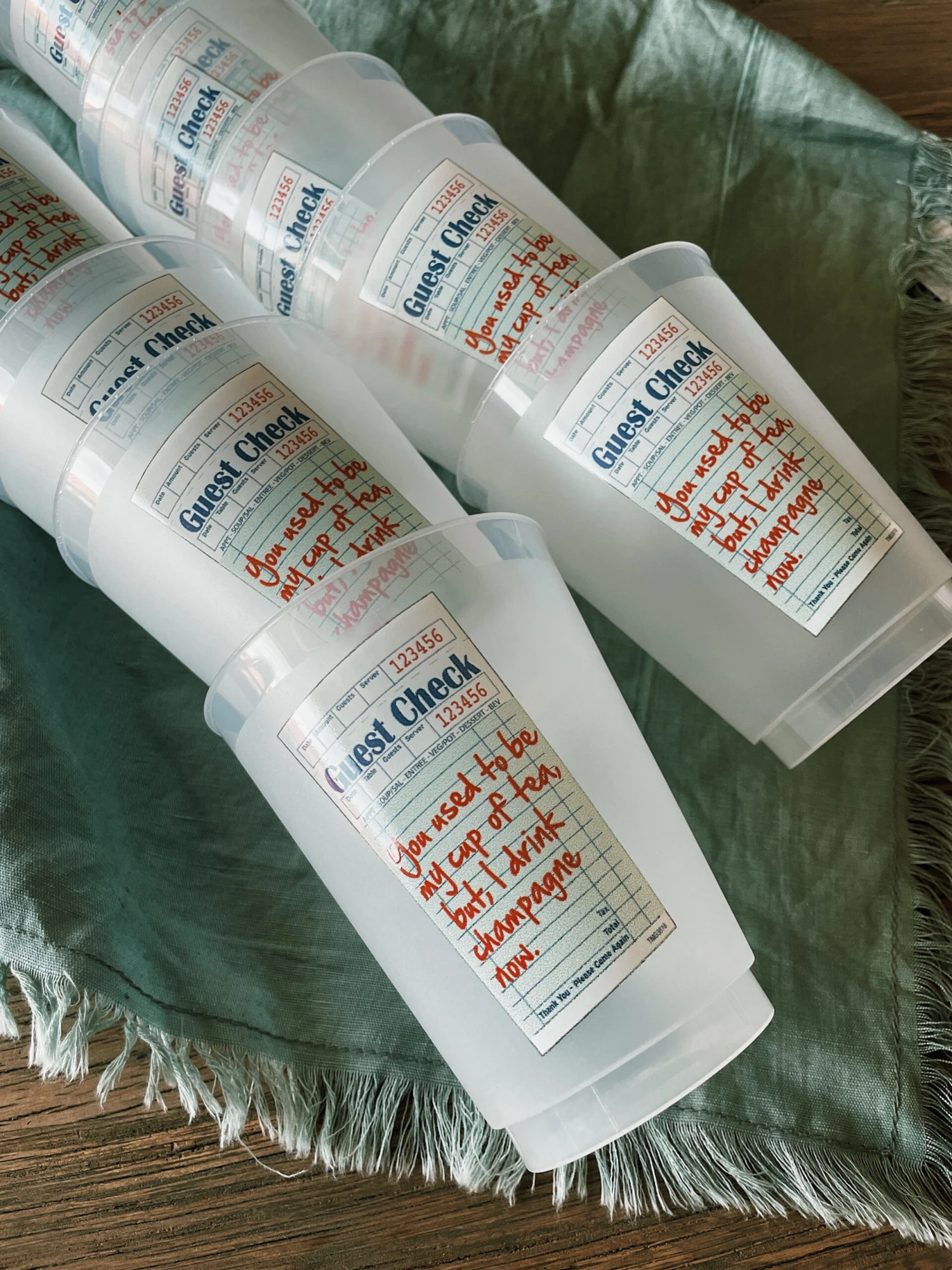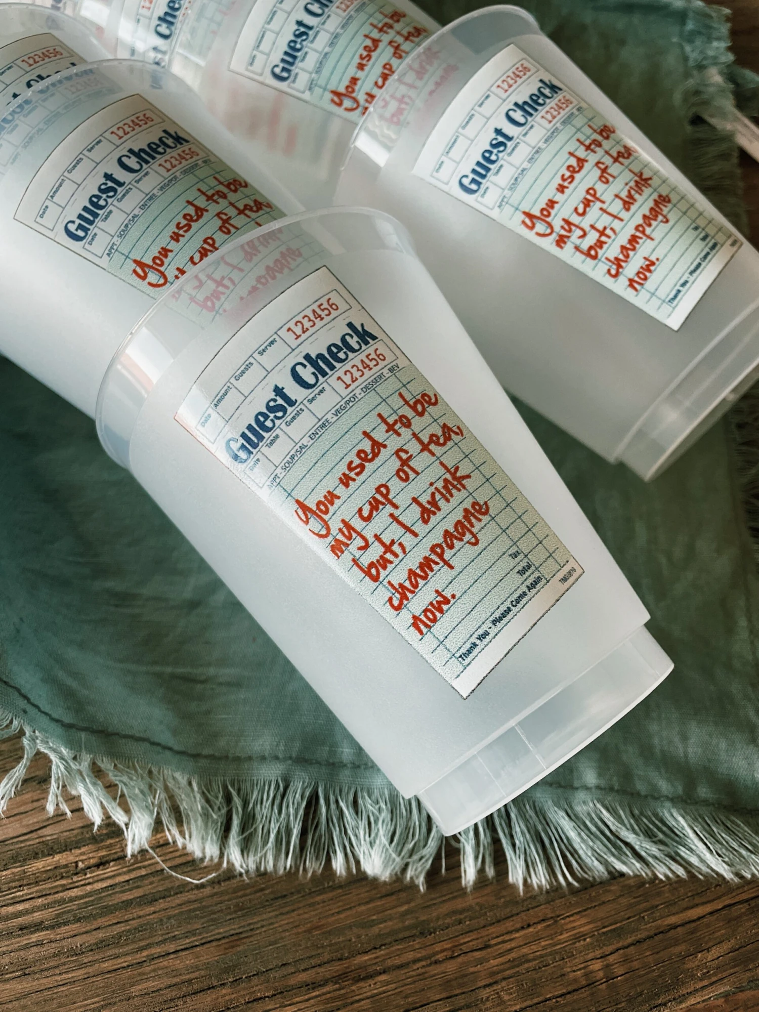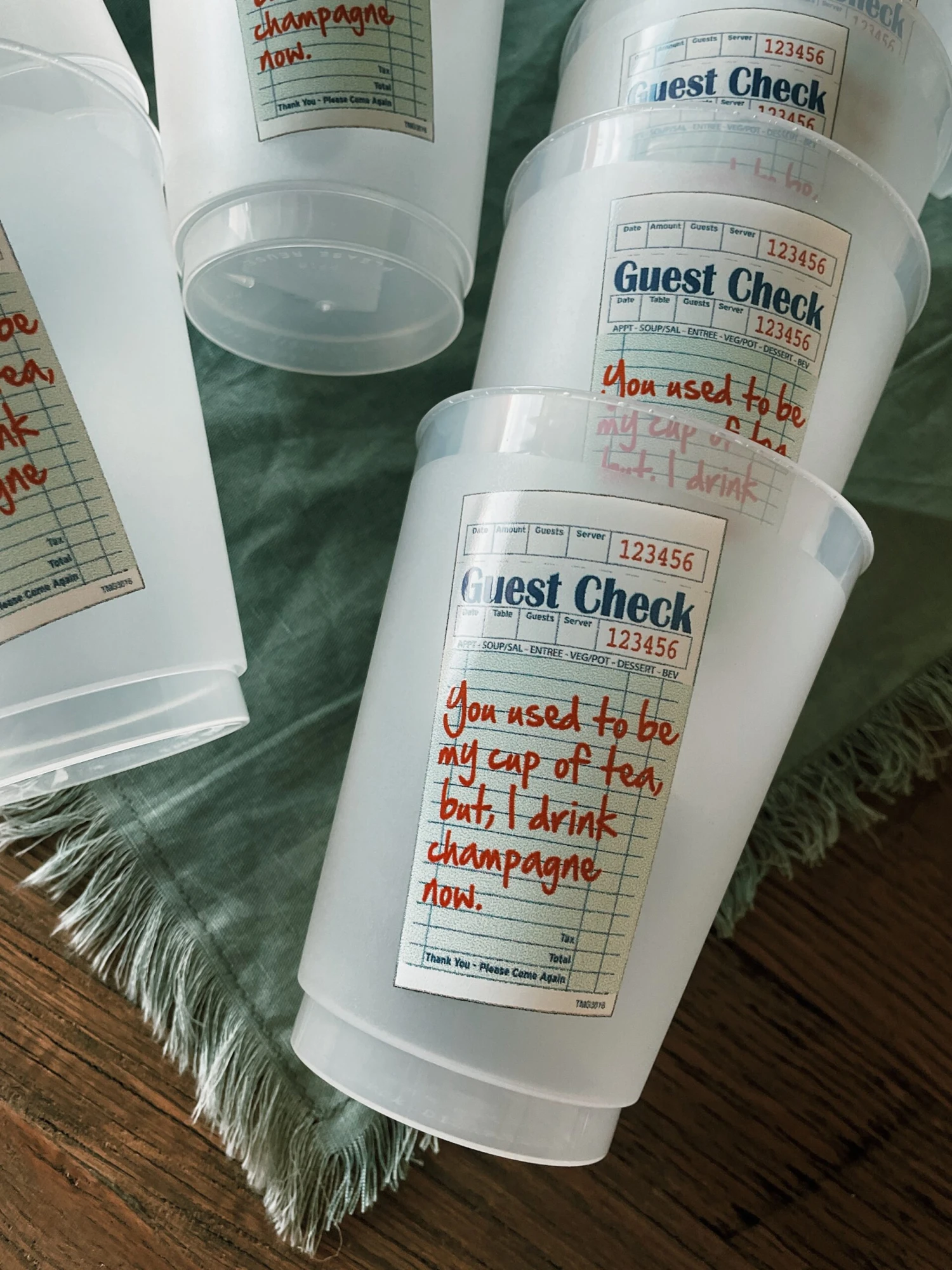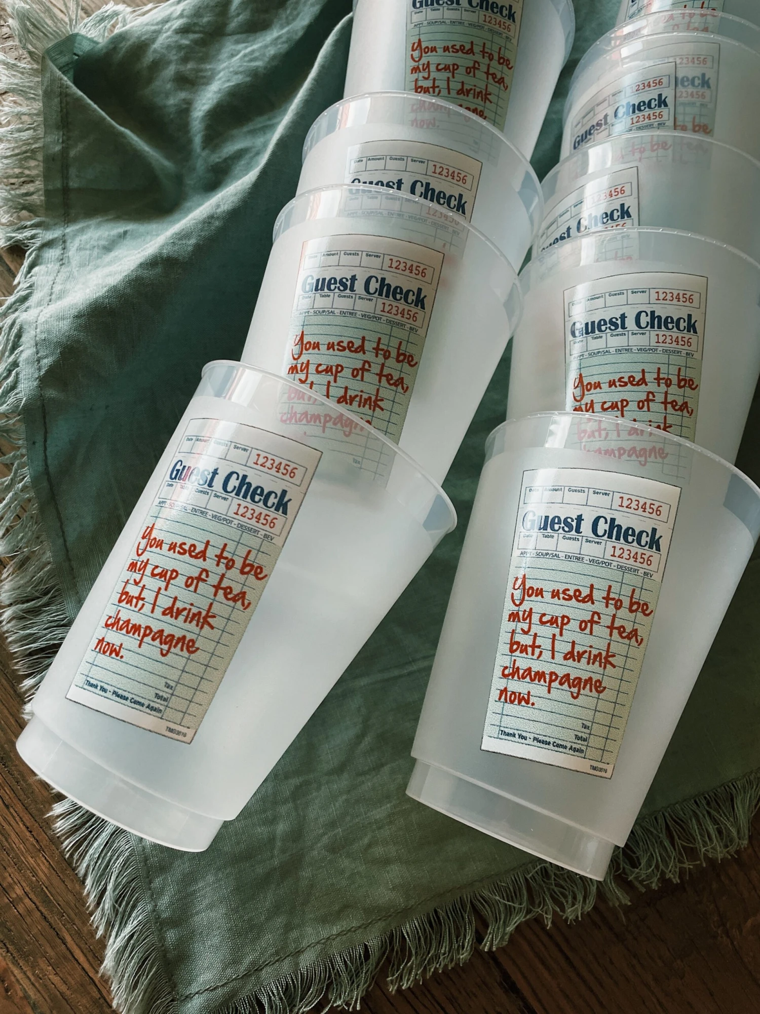 Cup reads “You used to be my cup of tea but, I drink champagne now.”