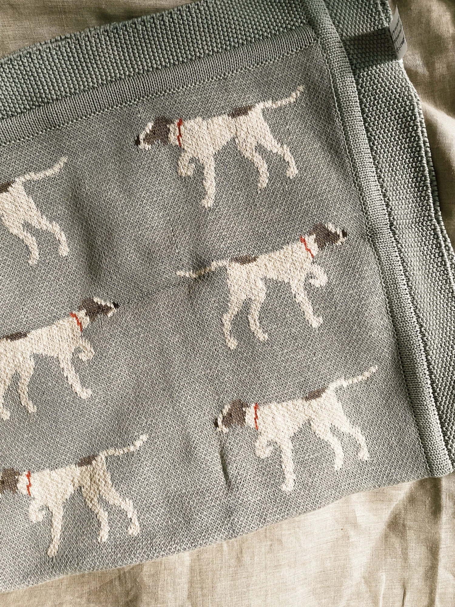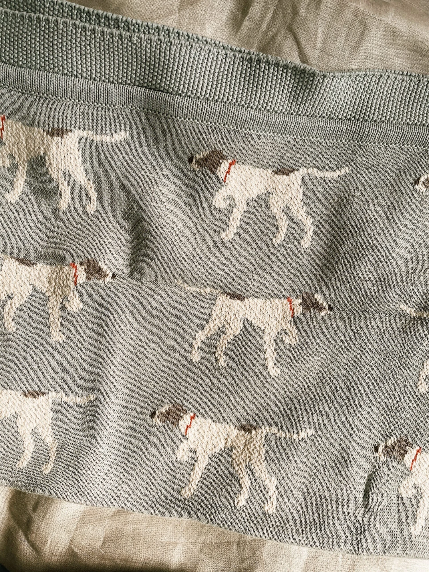 “40L x 32” W Cotton Knit Blanket w/ Dogs, Light Blue