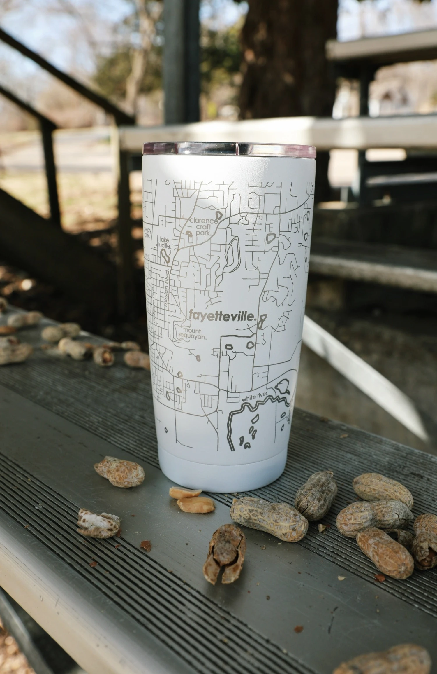 Our Map Drinkware and Glassware collections are available for every U.S. city and town! Stay refreshed and inspired with our engraved Fayetteville AR Map 20 oz Insulated Pint Tumbler with lid. Each tumbler is triple-wall vacuum-insulated for maximum temperature retention and comes precision-etched entirely around the vessel with a detailed map of your favorite city’s streets, neighborhoods, and coordinates. Available in Matte White and Midnight Blue.
