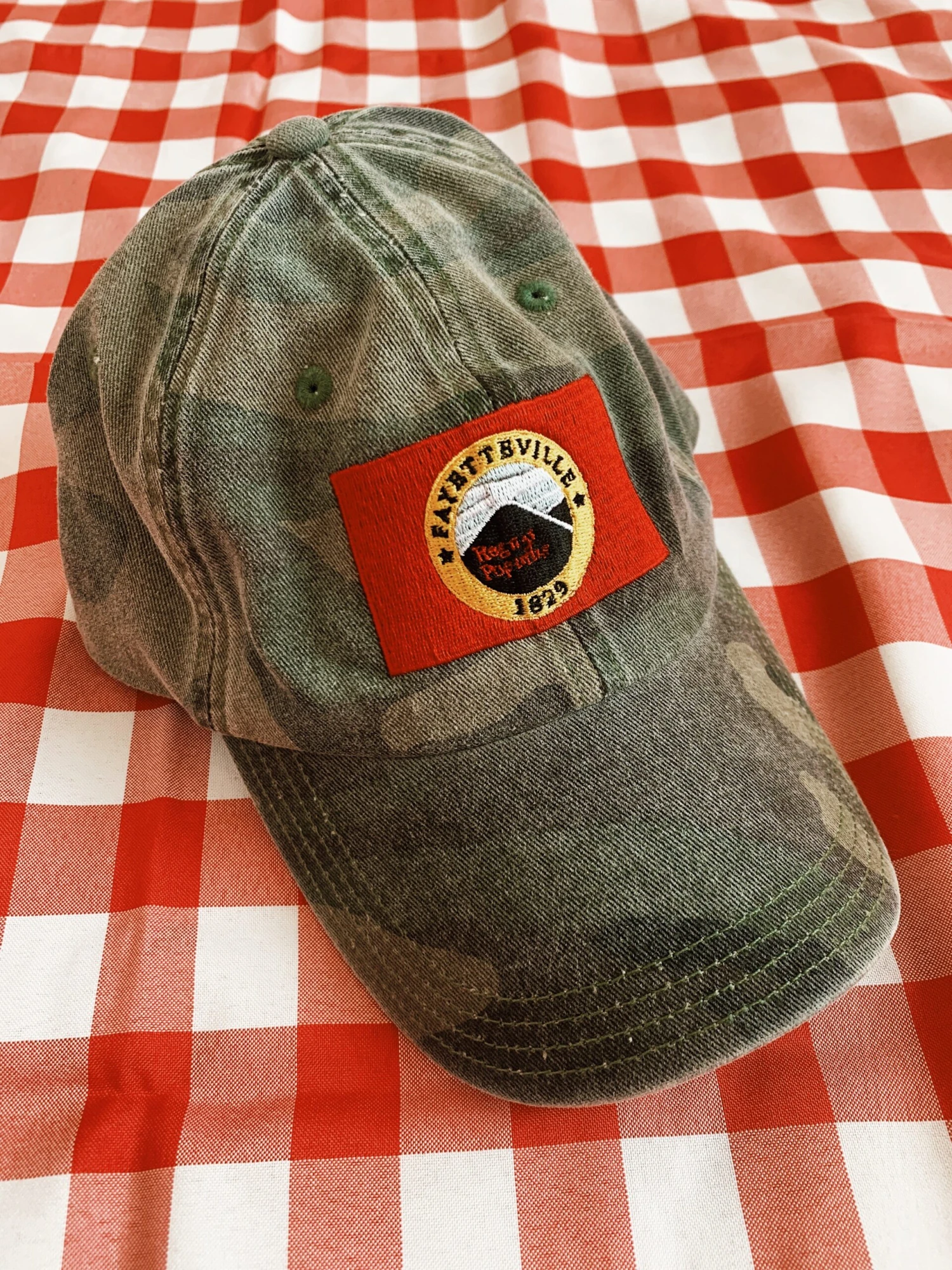 Show off your love for the city of Fayetteville with this rad hat, in camo print!
