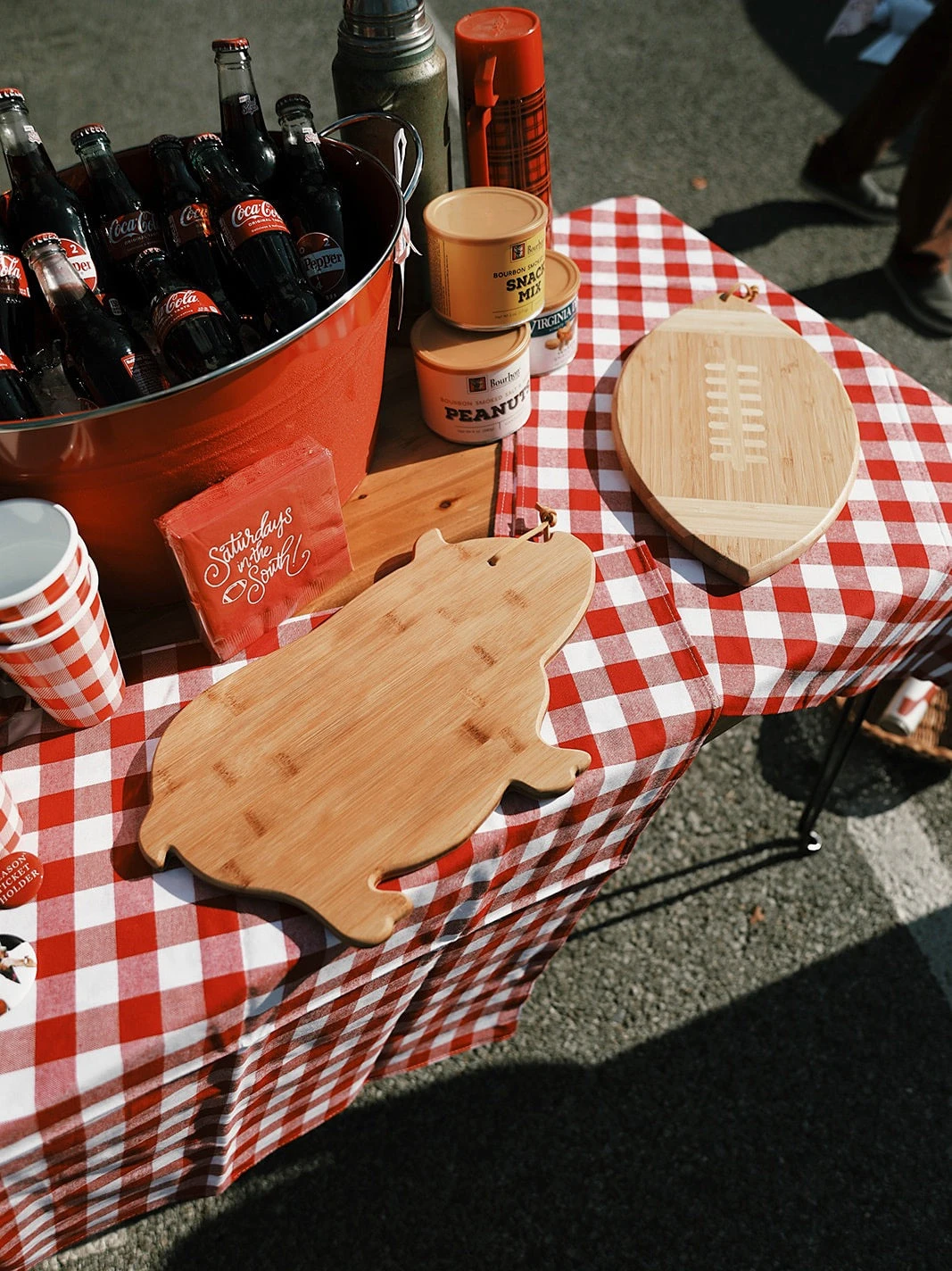 Gear your store up for game day with our Football Board! The board is beautiful designed with lighter bamboo representing the laces and familiar stripes of a pig skin. This board is ideal for pairing with tailgate assortments or just as a gift item for those that love the game. It includes a hang tie to easily double as a décor piece as well.