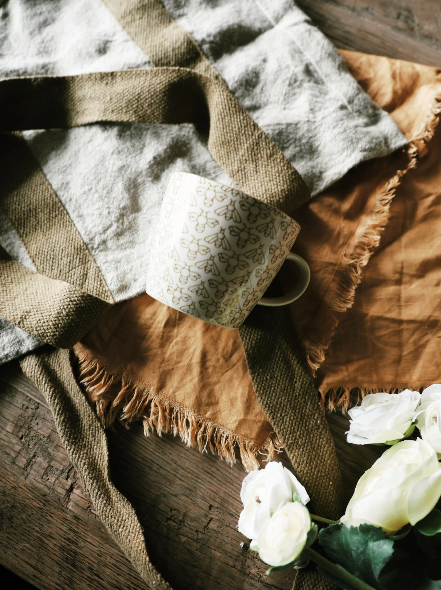 3-3/4″ Round x 3″H 8 oz. Hand-Stamped Stoneware Mug w/ Pattern, Multi Color, 4 Styles ©