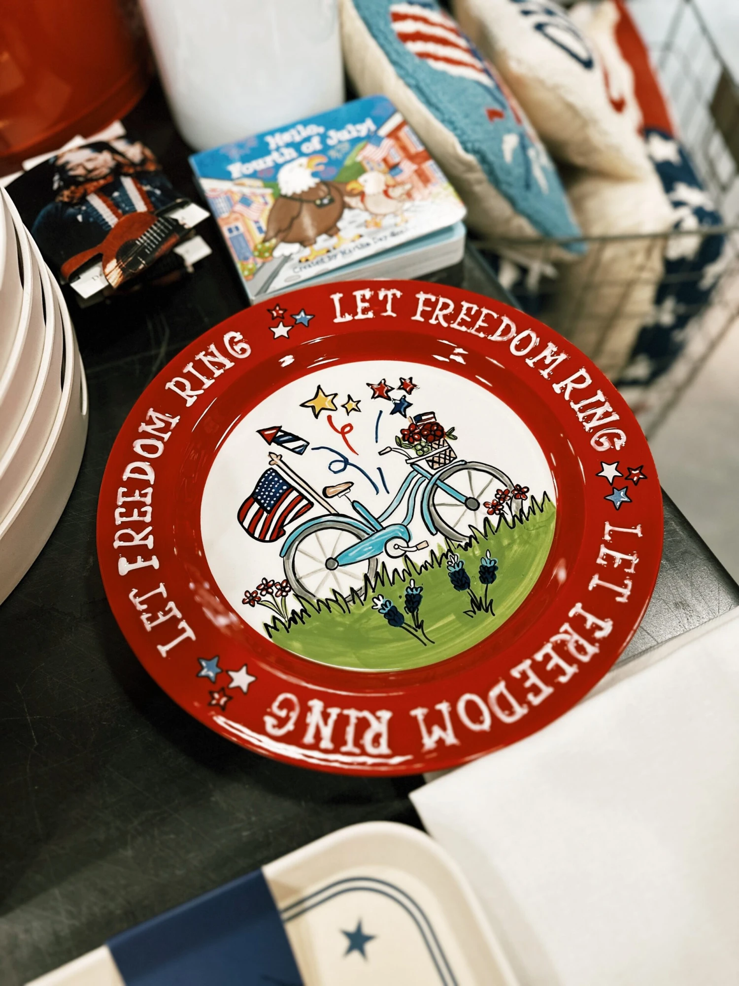 Enjoy Fourth of July classics this year on our Let Freedom Ring Plate! With a bicycle and fireworks, this plate is perfect for your Patriotic festivities!