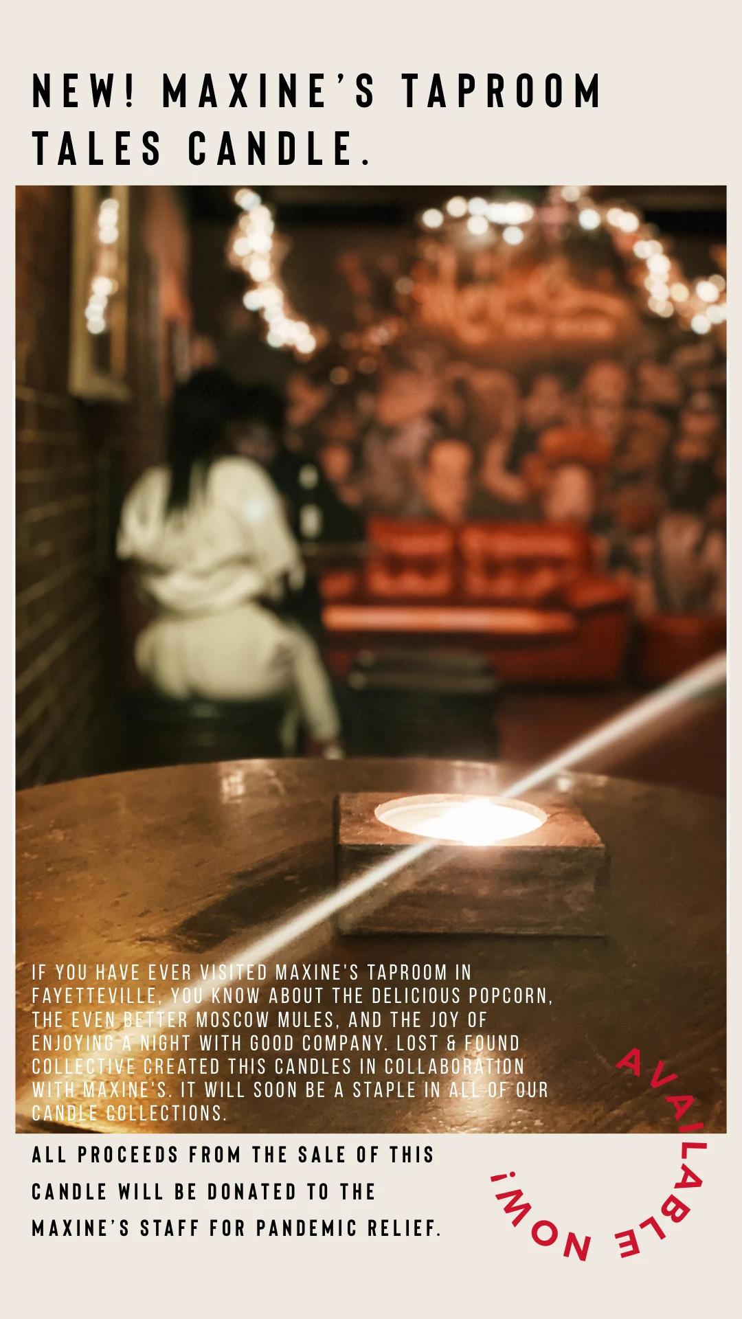 If you have ever visited Maxine’s Taproom in Fayetteville, you know about the delicious popcorn, the even better Moscow Mules, and the joy of enjoying a night with good company. Lost & Found Collective created this candles in collaboration with Maxine’s. It will soon be a staple in all of our candle collections.