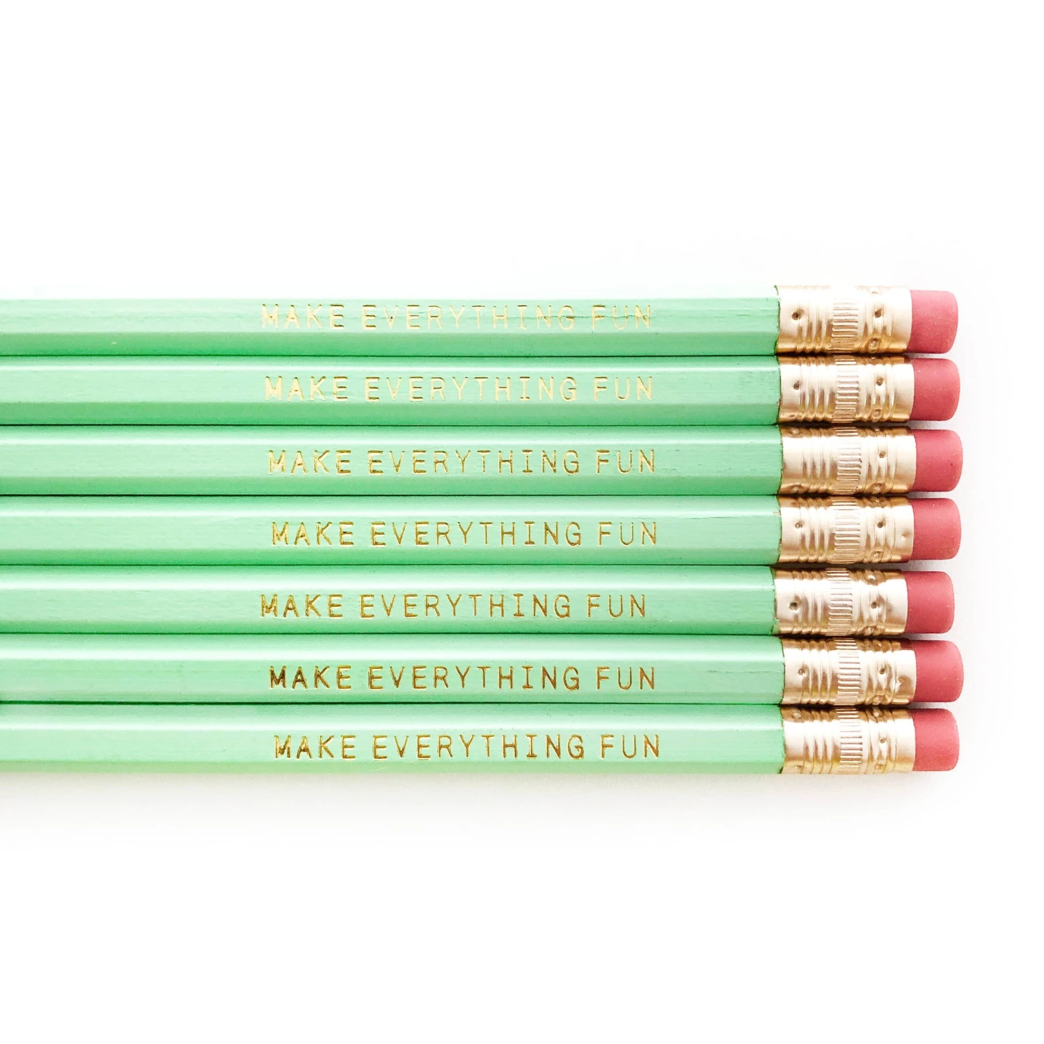 Set of 7 no. 2 cedar wood pencils Gold foil lettering Unsharpened Beautifully packaged and ready for gifting