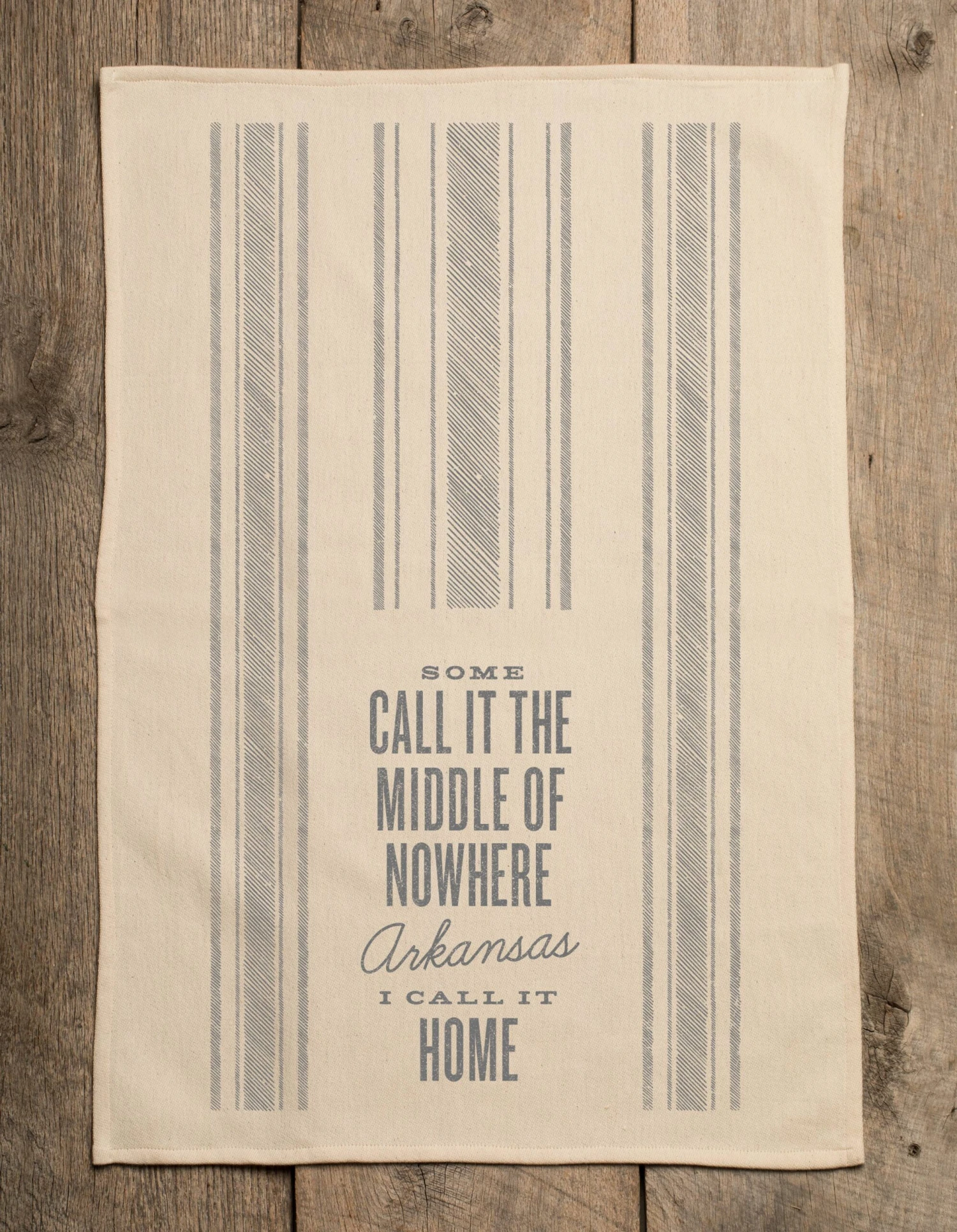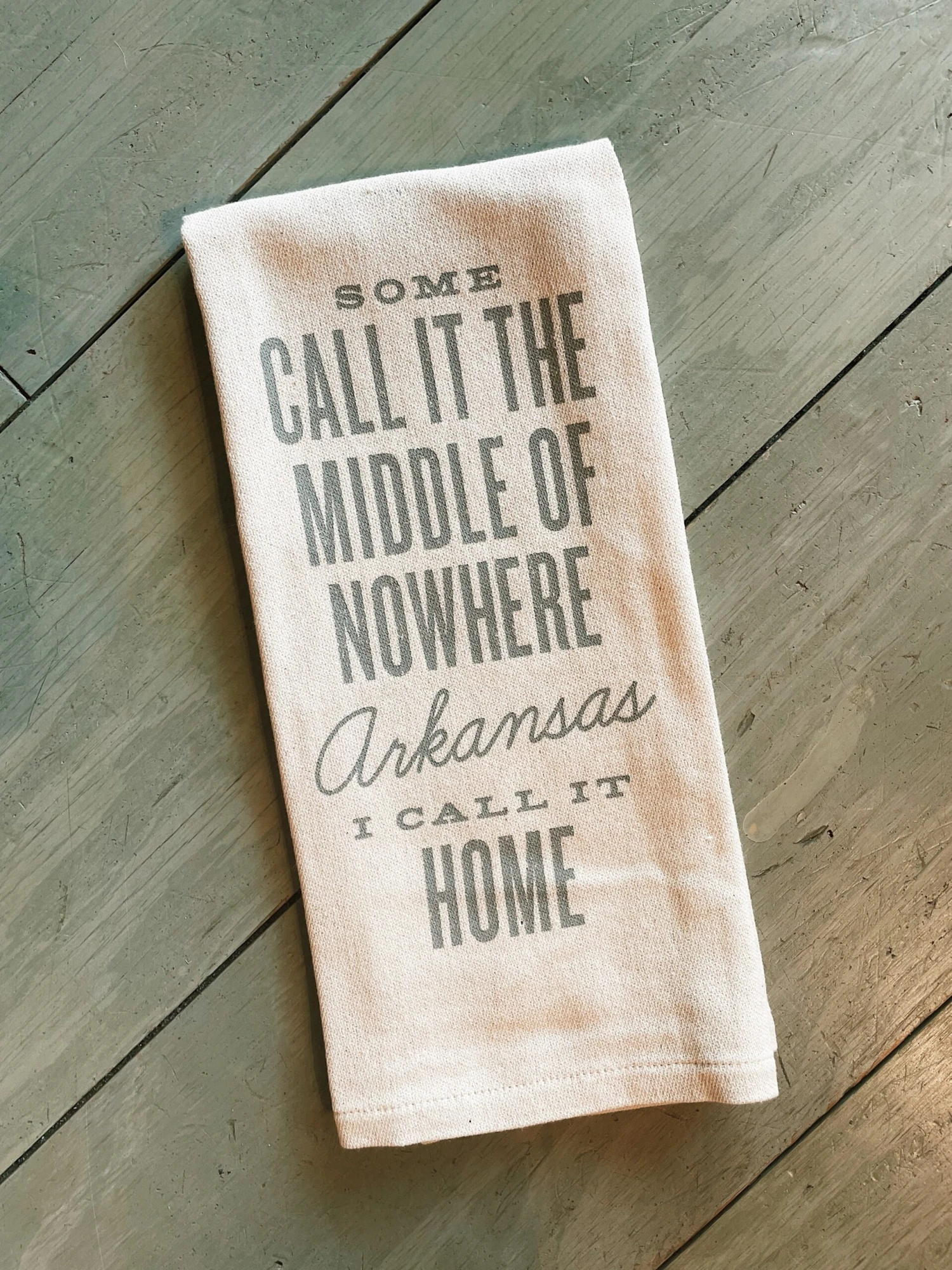 Some Call it the Middle of Nowhere Arkansas … I Call it Home. Size: 27 1/2″ x 18. Features an original hand-illustrated design.