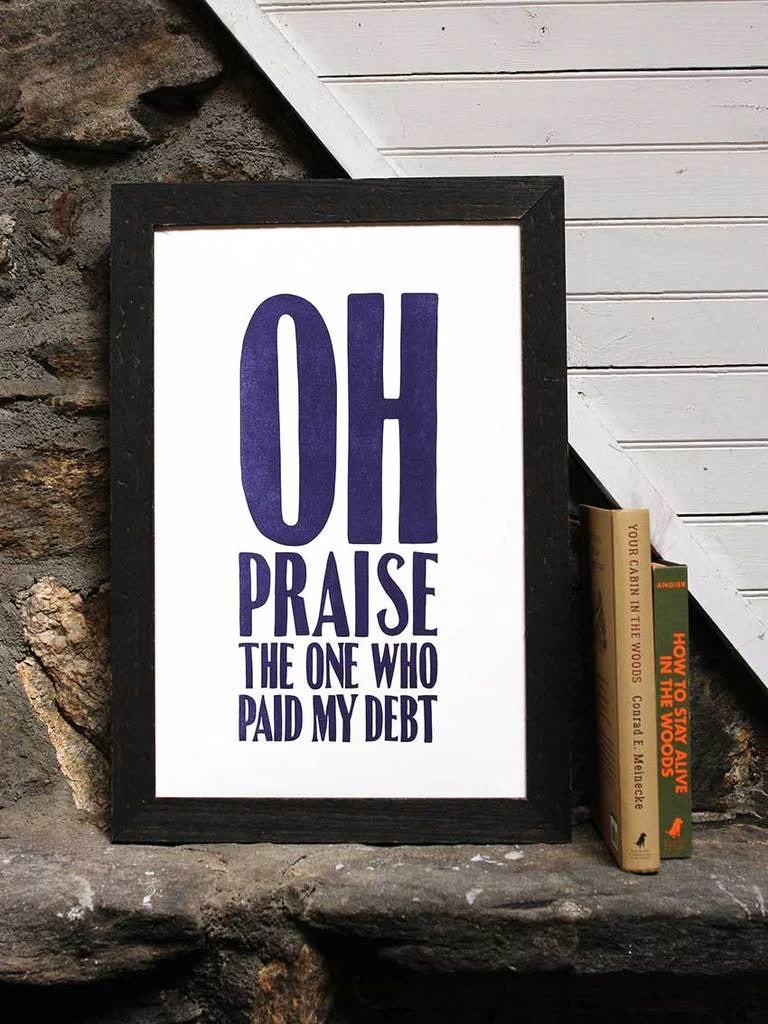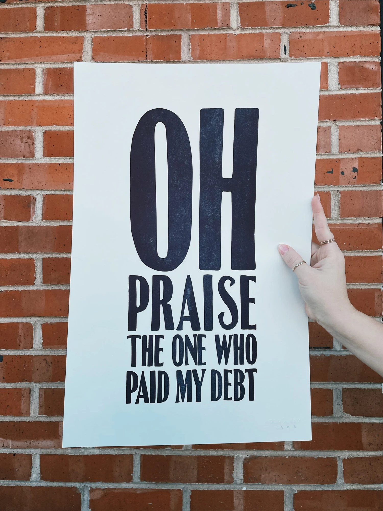 Quote reads “Oh praise the one who paid my debt” from church hymn “Jesus Paid it All.”