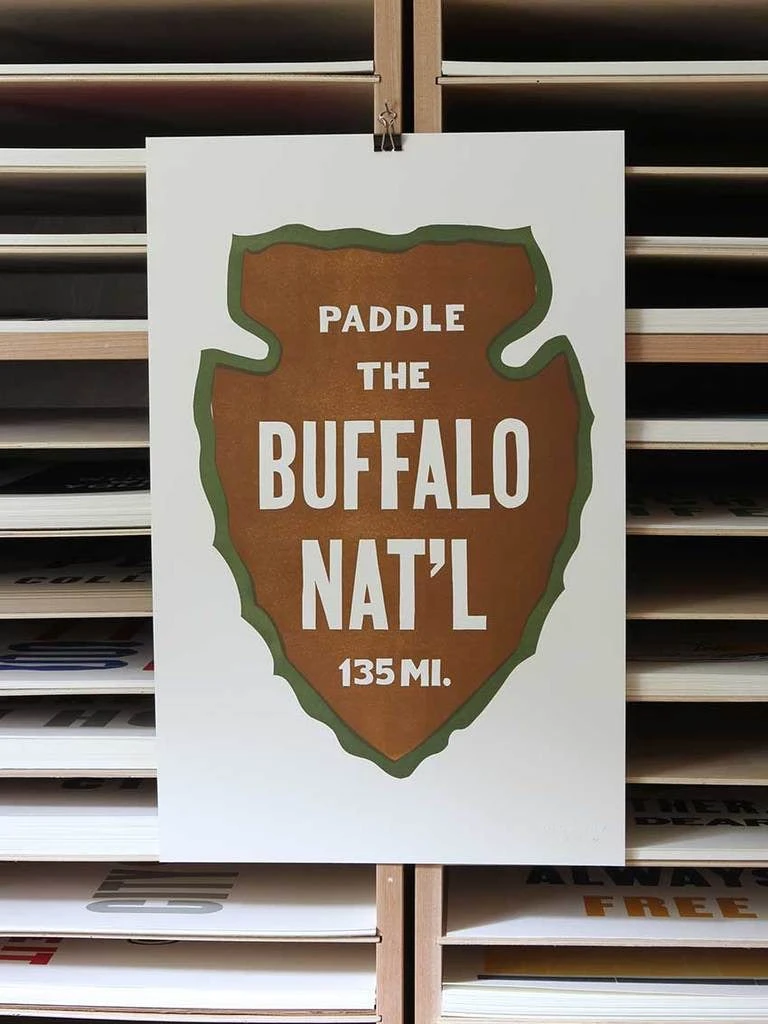 Quote reads, “Paddle the Buffalo National. 135 mi.”