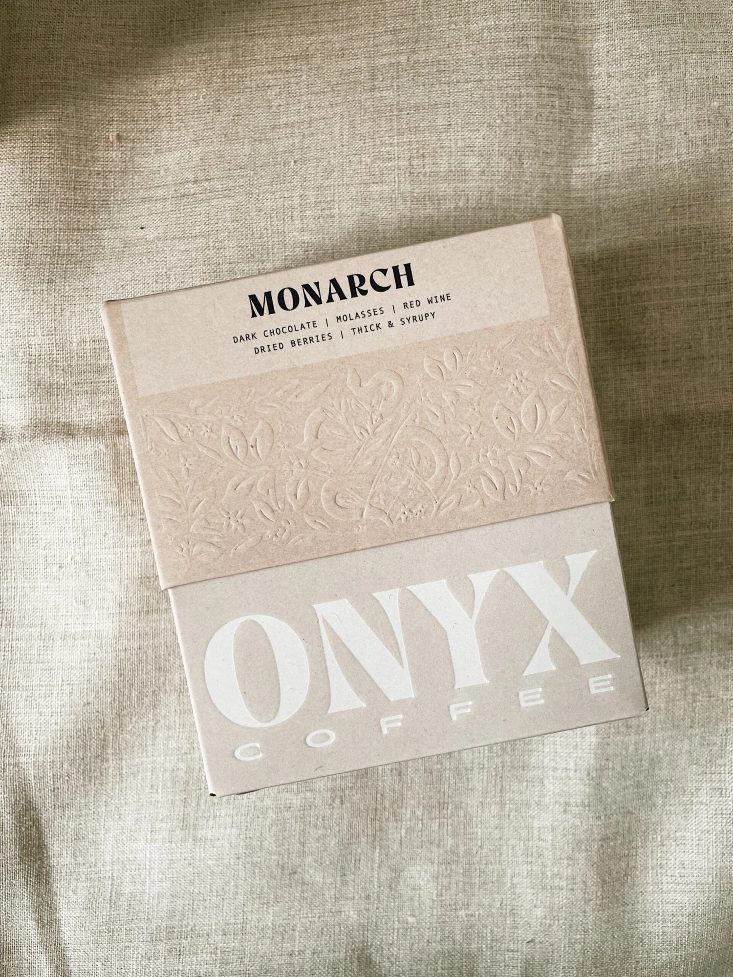 Monarch is our most developed roast. It is a flavor profile that we designed to work well with fats. This coffee works extremely well with cream or as an espresso that has a high volume of milk. A very sweet sugar dense coffee that binds to the fats and creates multiple complex sugar browning notes from Swiss chocolate to cacao depending on the amount of milk added. Enjoy as drip or espresso.