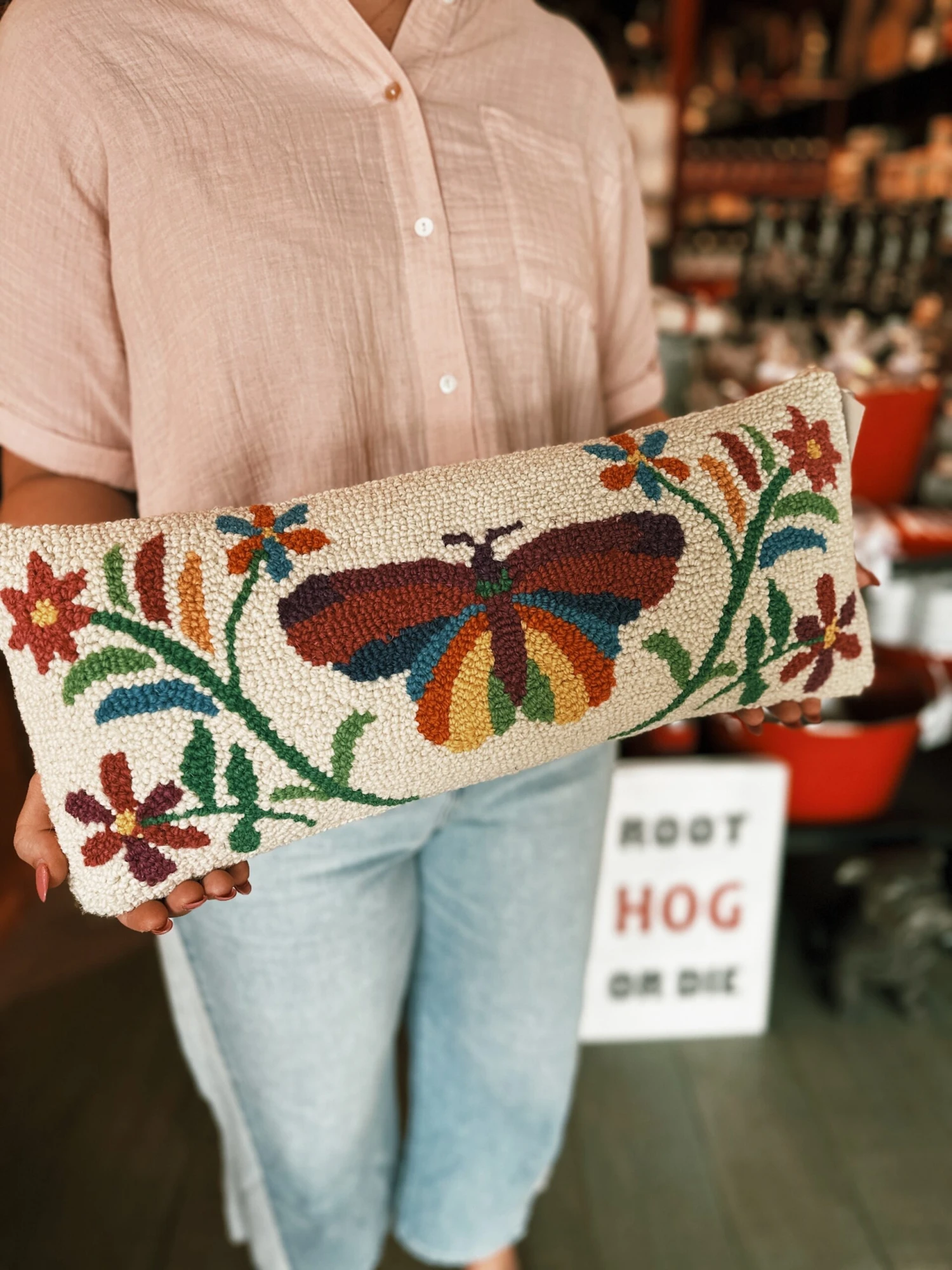 ★100% wool hooked accent pillow