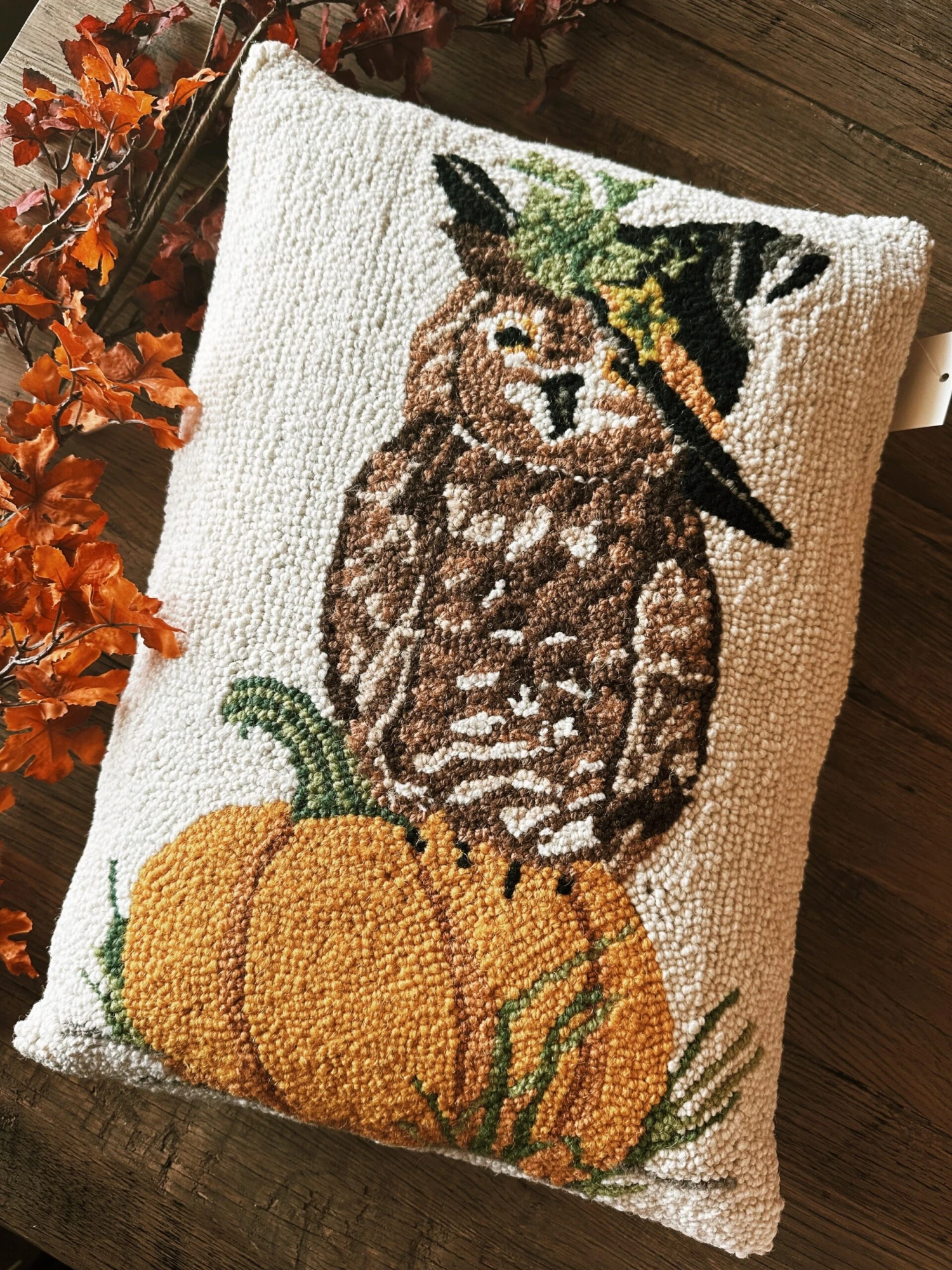 ★100% wool hooked square accent pillow