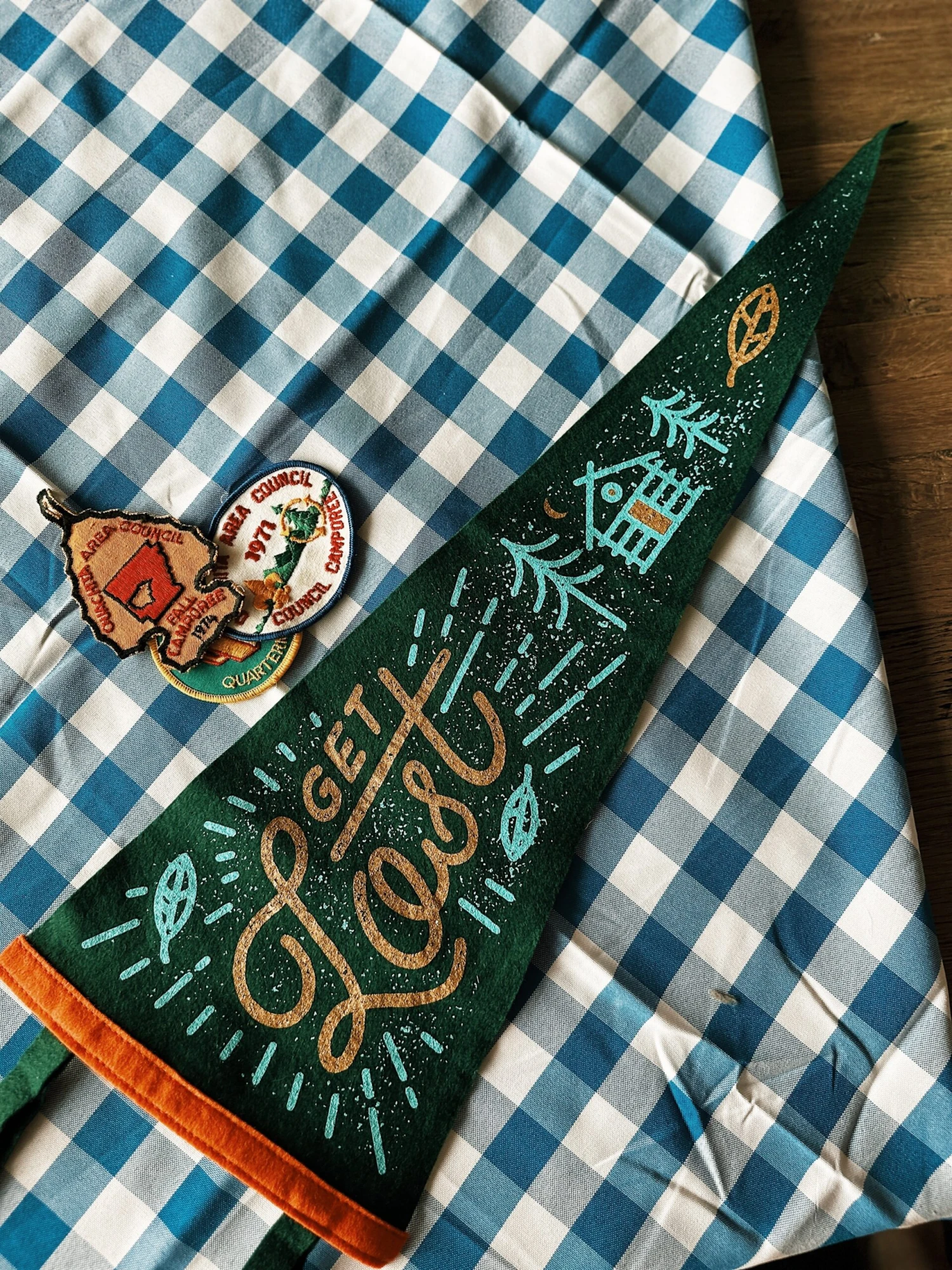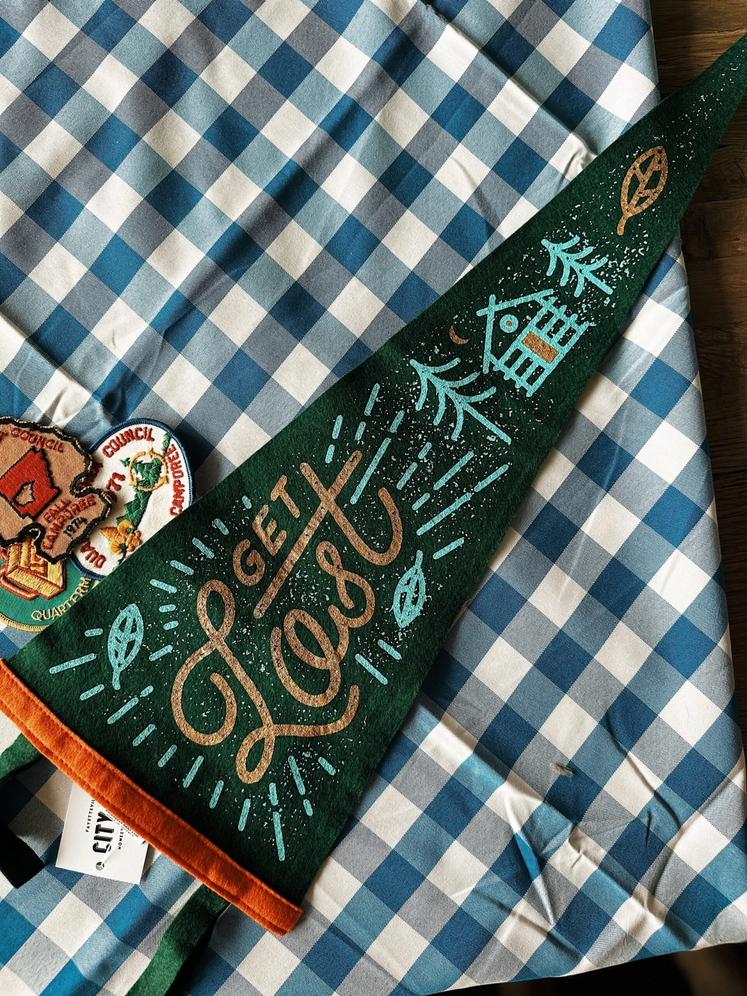 This custom Get Lost pennant is perfect for explorers, campers, travelers, adventurers and lovers of the outdoors alike. A collaboration with Lost Lust Supply.