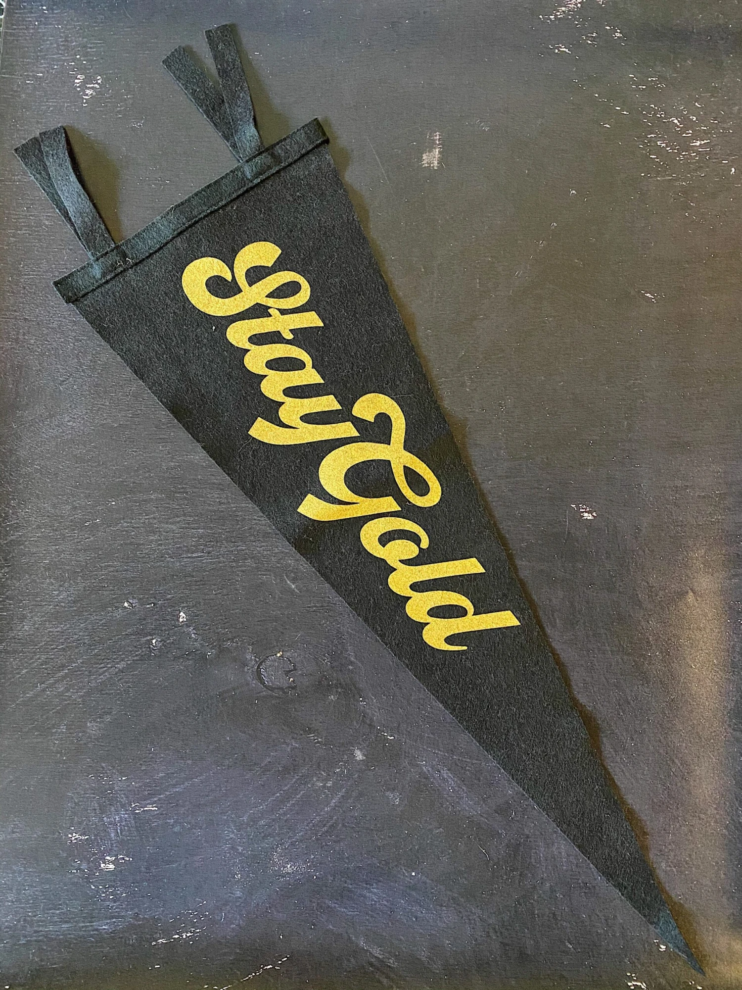 Stay gold, Ponyboy. This custom Stay Gold pennant is a nod to The Outsiders, as well as probably over 100 pop-punk music references. Features lettering from designer Scott Naauao.