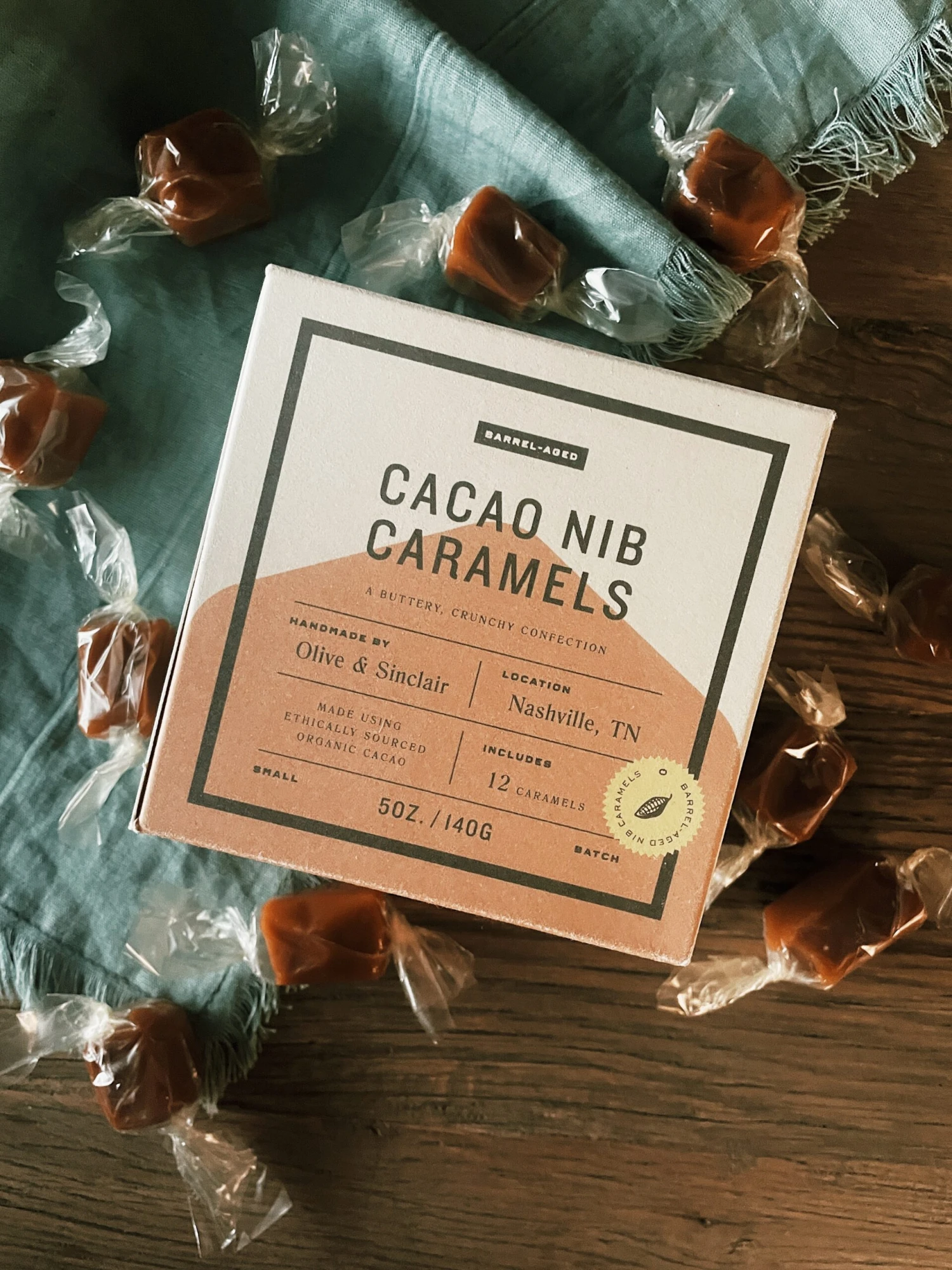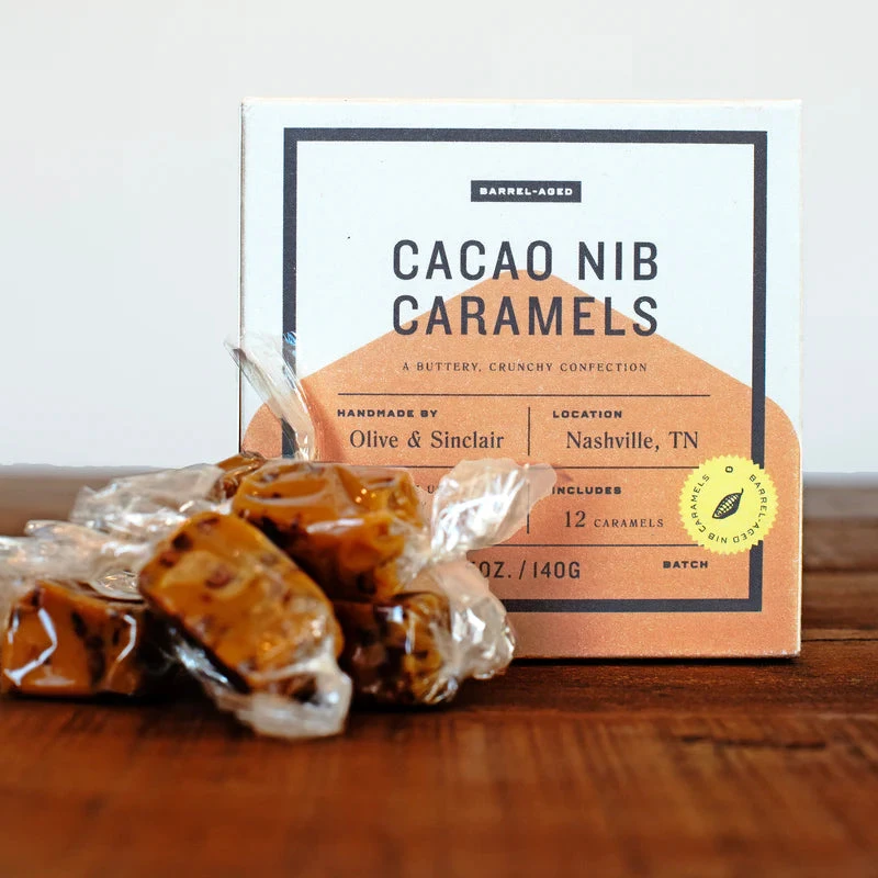*Ingredients: Sugar, Cream, Bourbon Barrel-Aged Cocoa Nibs, Butter, Glucose, Sea Salt, Tartaric Acid