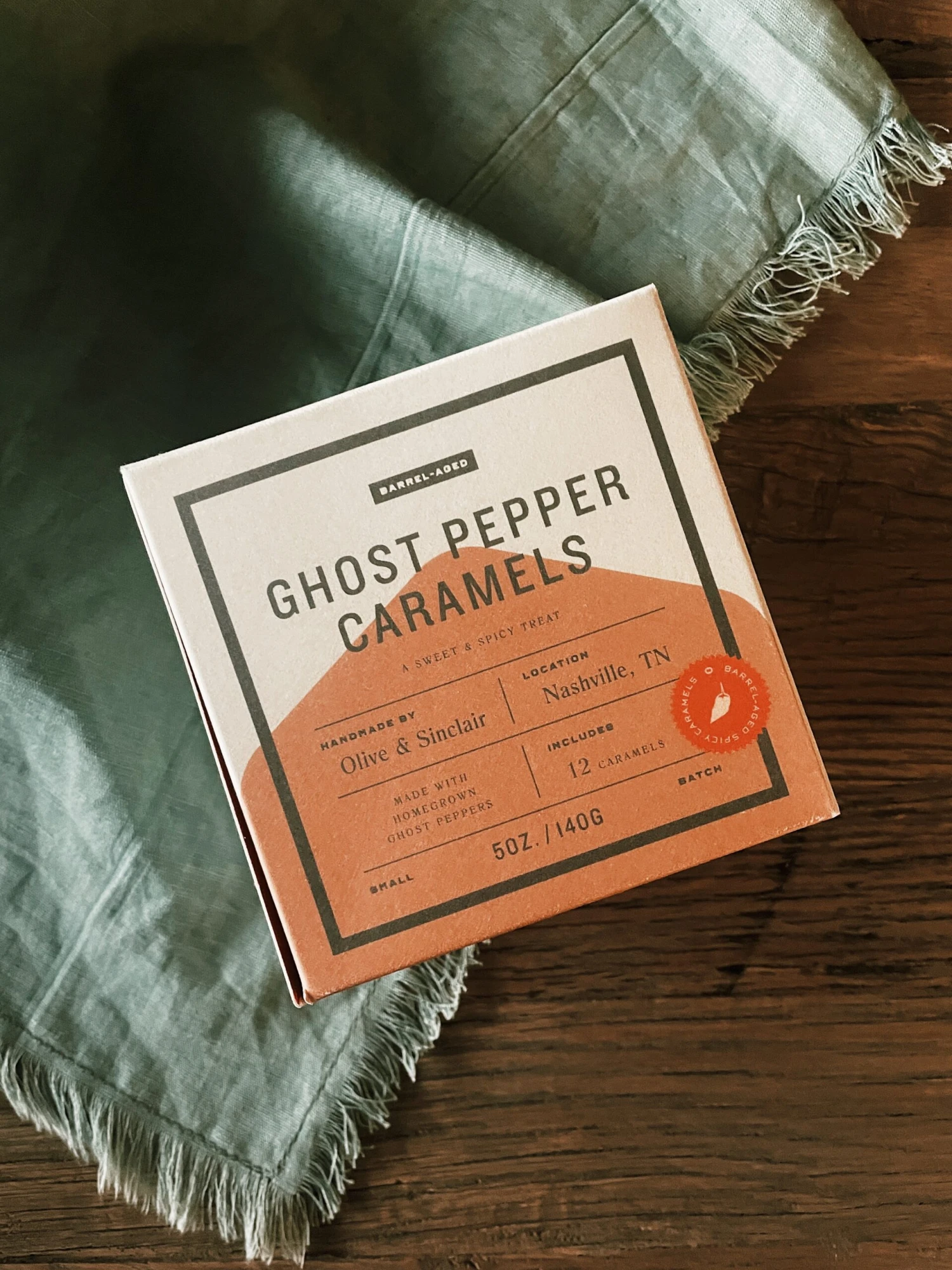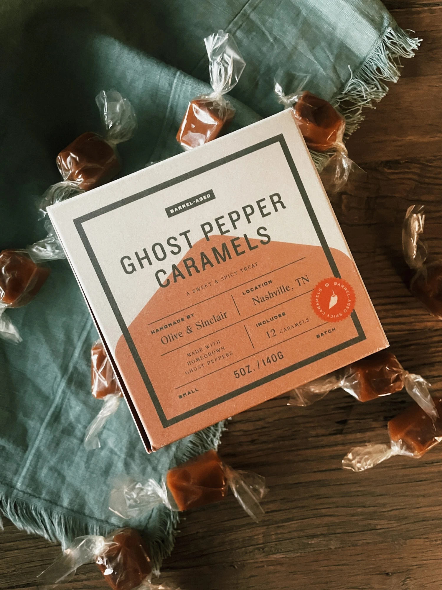 Our ghost pepper mash, that famously brings the heat in our award winning Pappy Van Winkle Bourbon Barrel Pepper Sauce, finds a new partner in creamy caramel. Homegrown in Georgia by our partners at Midland Ghost, and aged in freshly emptied Pappy Van Winkle Bourbon Barrels, ghost pepper mash is infused with a smoky and oaky heat that meets smooth and flavorful caramel for a sweet and spicy treat that is truly out of this world. Crafted in partnership with the makers behind our other barrel-aged delectables, small batch artisan chocolatiers Olive & Sinclair, these sweet heat treats are handcrafte