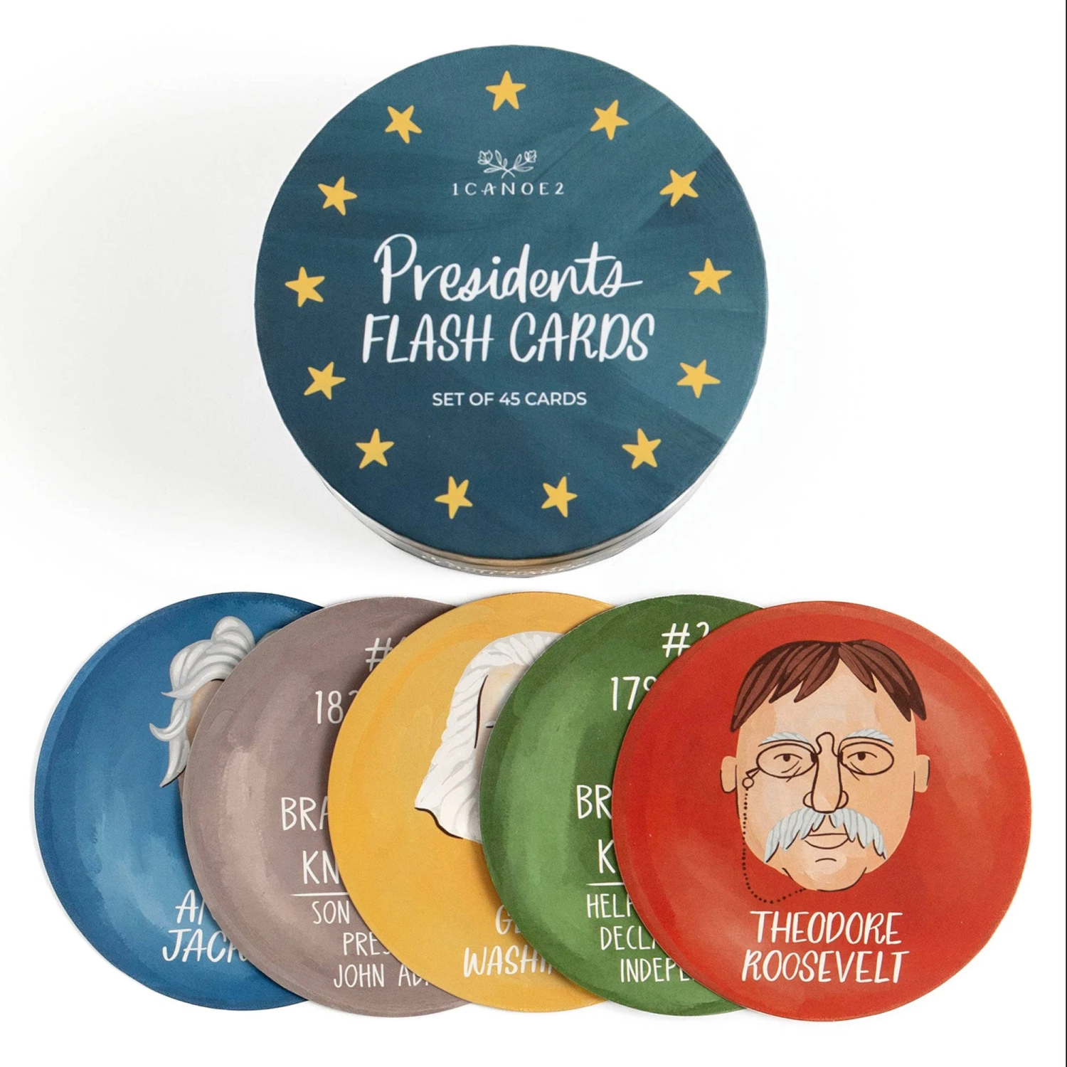 Instructions| These flash cards feature hand-painted portraits of all 46 U.S. Presidents. Learn key facts about each President to easily study American history.