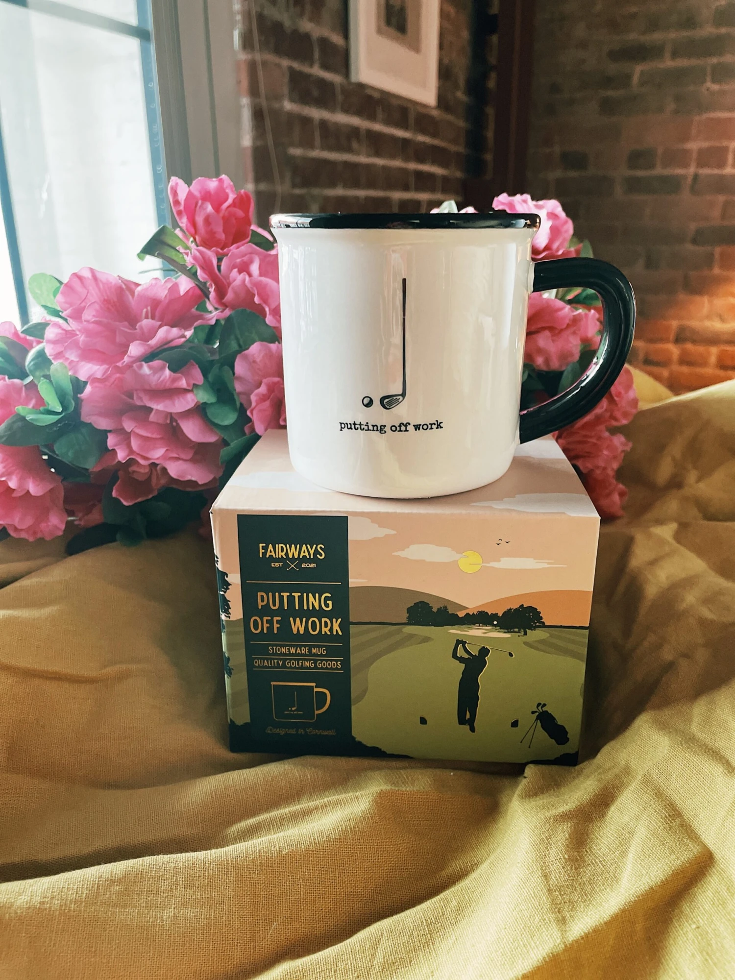 ‘Putting Off Work’ | Dreaming of being on the golf course rather than being in work then this mug is for you! Featuring the slogan ‘putting of work’ and a golf club design.