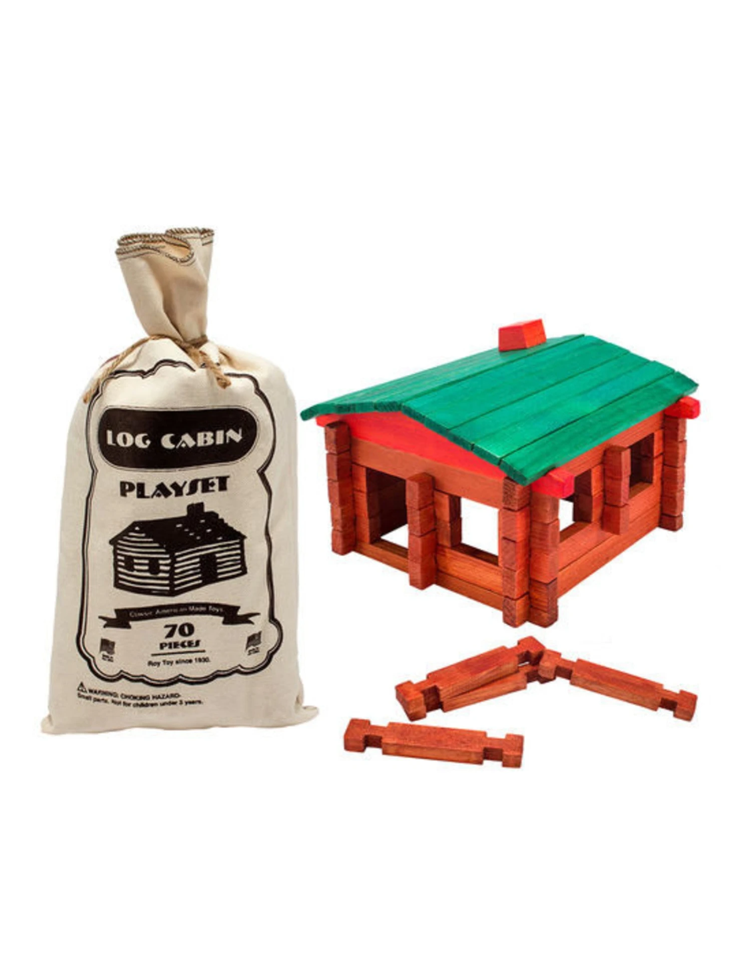 Made in the USA since 1930, these Log Building Sets are still made of real wood and are some of the most versatile building pieces around. Heavy canvas pouch with tie-string.