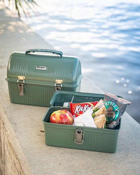 This compact lunch box is big on keeping your food nice and cold until it’s time to eat. But that’s not all. Right inside the lid, there’s a metal bracket that will hold your 16oz Stanley Trigger-Action Travel Mug or Vacuum Bottle in place.