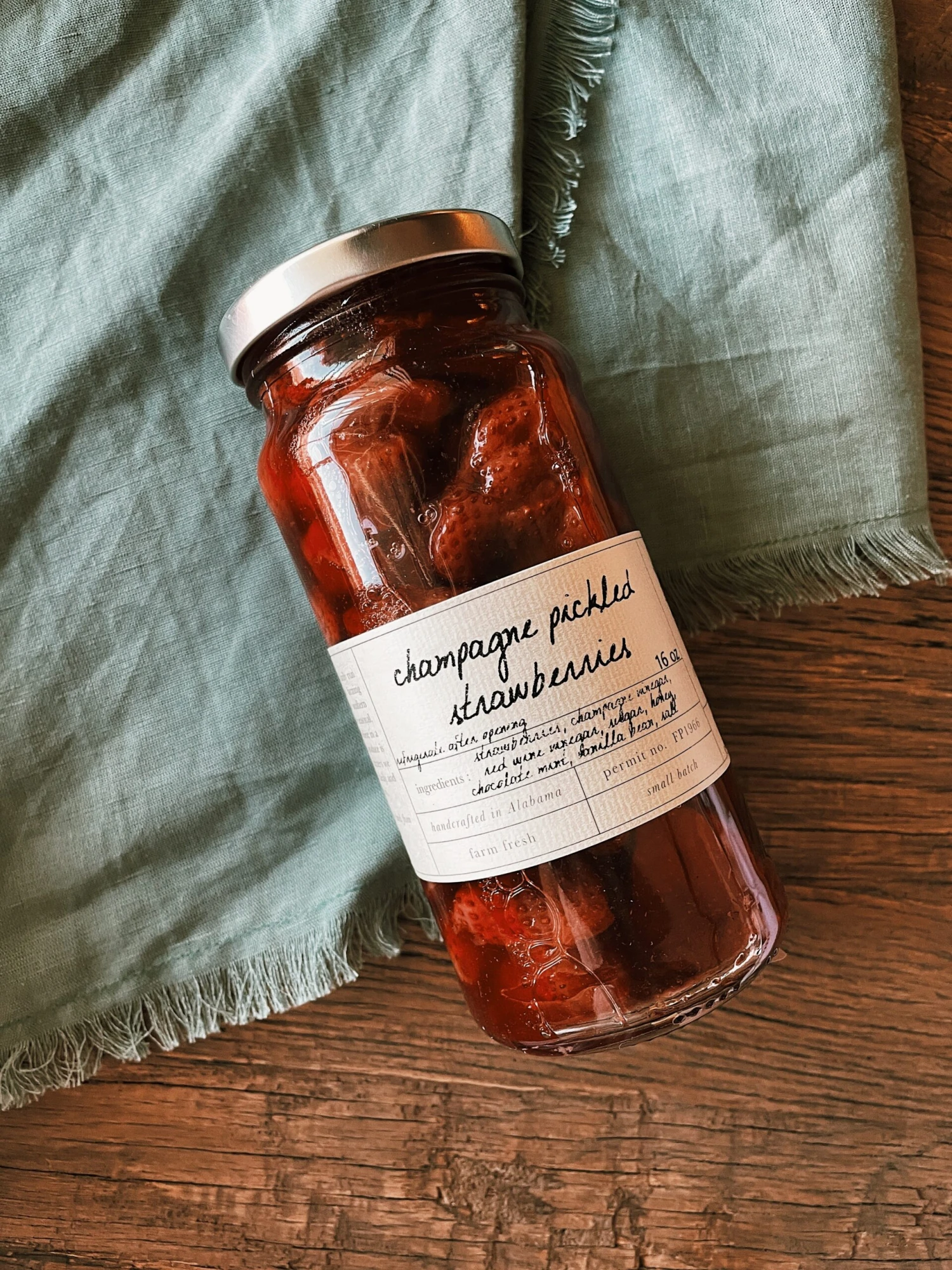 Our new pickled strawberries are like a zippy party in a jar. We take our organically grown Stone Hollow Farmstead berries, picked at the peak of ripeness, and let them dance a bit with champagne and red wine vinegar, sugar, and honey. Organic chocolate mint and hand-scraped vanilla beans coax the mixture into something altogether sublime!