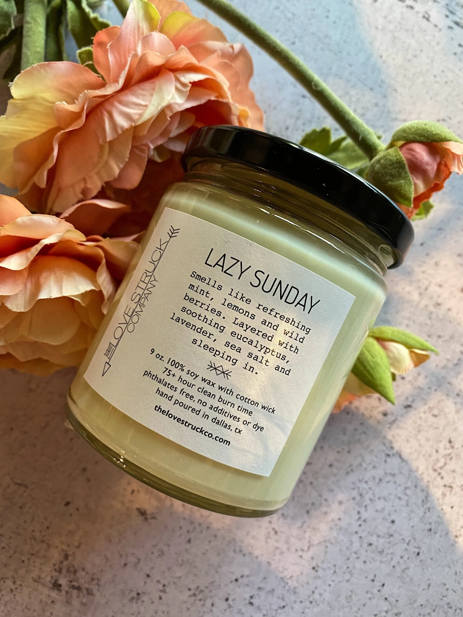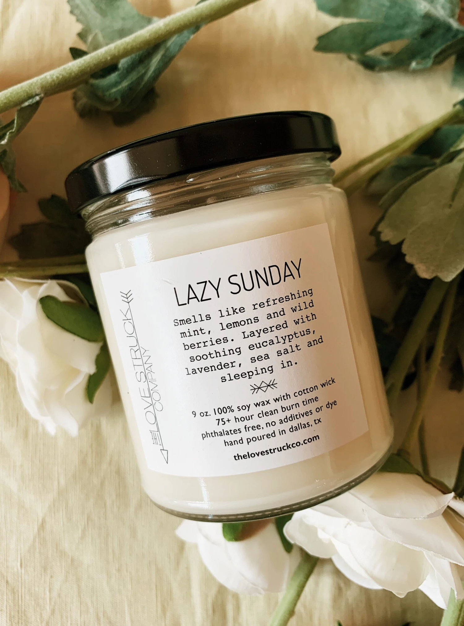 smells like refreshing ming, lemons and wild berries. Layered with soother eucalyptus, lavender, sea salt and sleeping in.