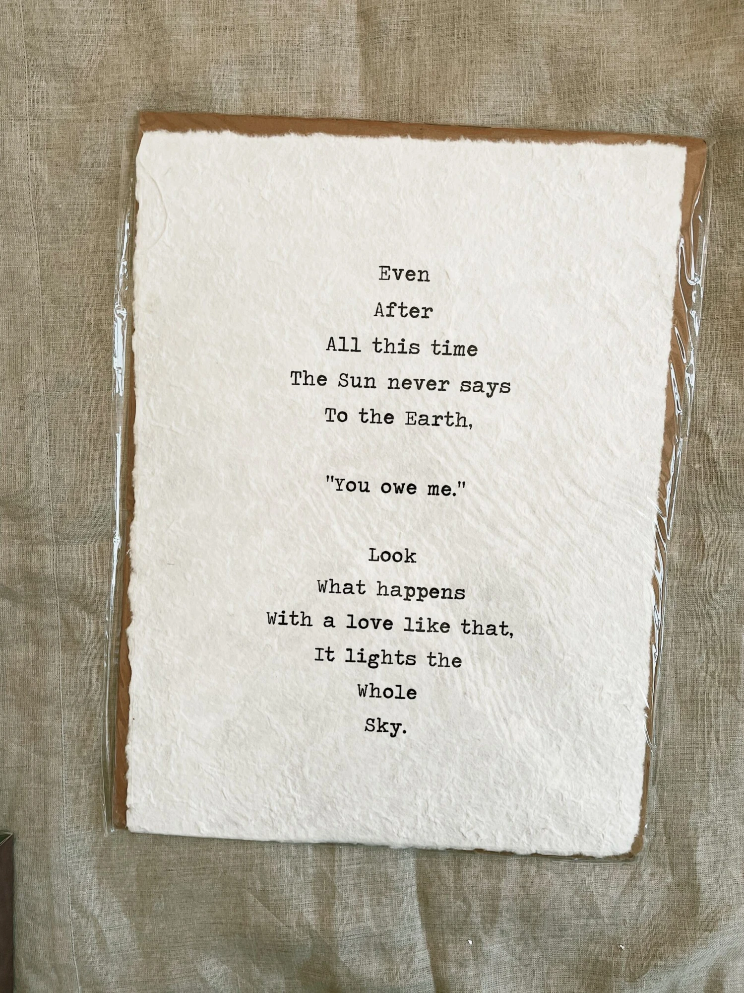 Quote reads, “Even After All this time The Sun never says To the Earth ‘You owe me.’ Look What happens With a love like that, It lights the Whole Sky”