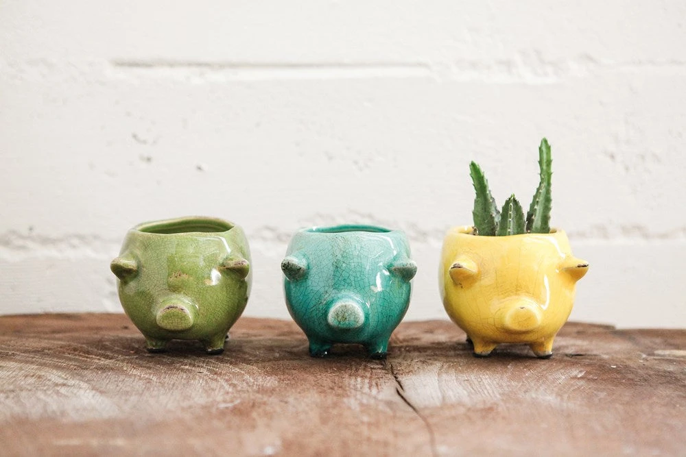 6″L Terra-cotta Pig Planter, 3 Colors (Holds 4″ Pot)
