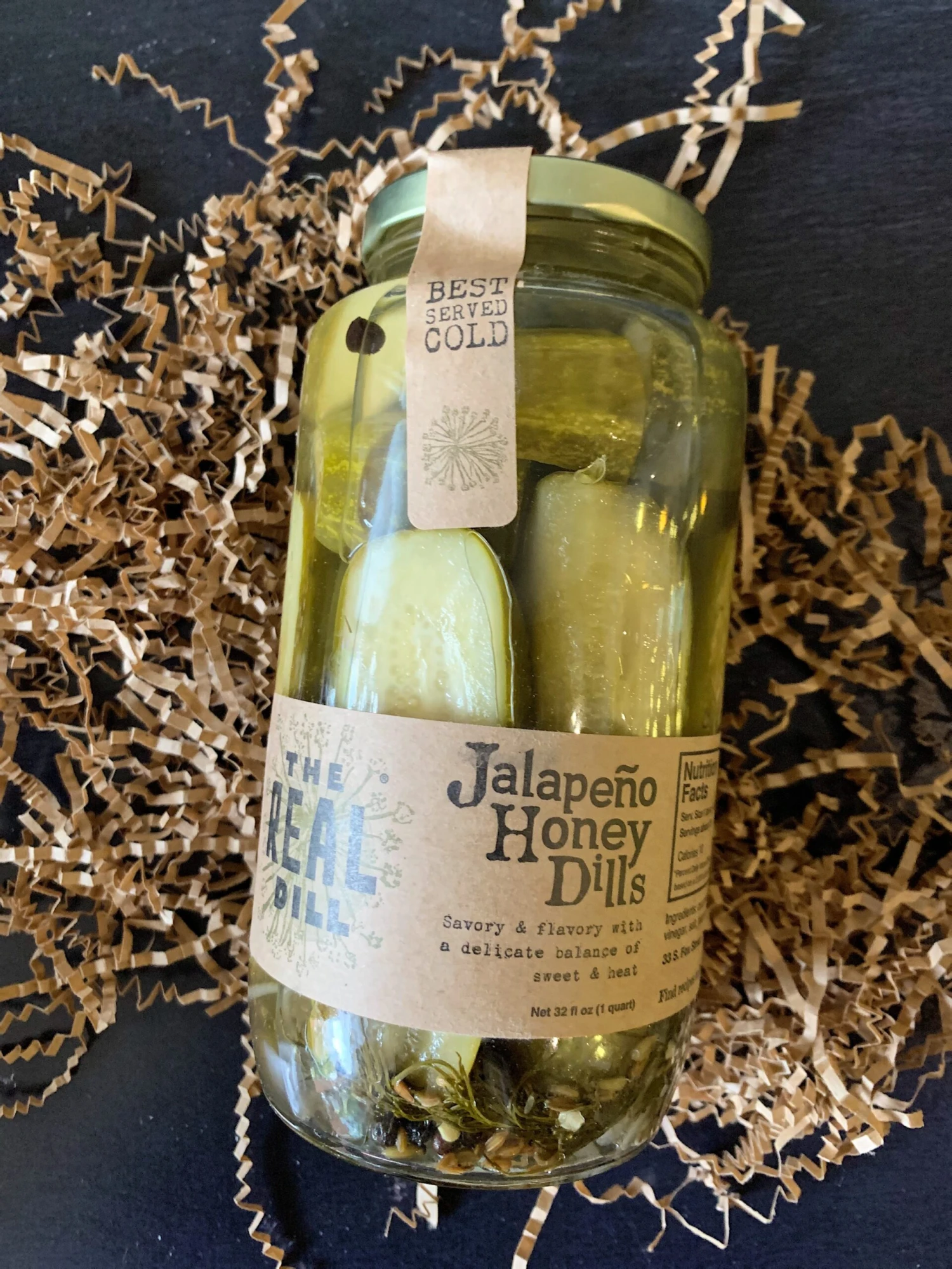 A dynamic combination of Colorado wildflower honey, jalapeño, and onion create a pleasant balance of sweet and savory. The fateful day when we cracked open the first jar of these contrastingly nuanced pickles is now referred to as “The Pickle Epiphany,” when our hobby officially graduated to a profession. If homemade was a flavor, it’s what you taste in these uniquely familiar, yet one-of-a-kind pickles.