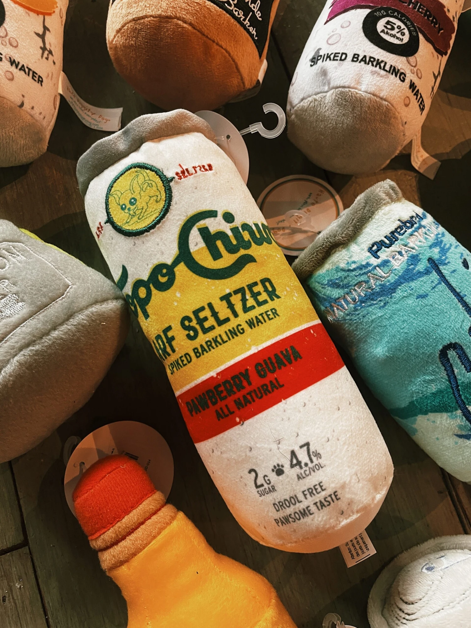 Does your parched pooch have a thirst for fun? Then quench it with our Topo Chiwawa Arf Seltzer Can! This Pawberry Guava can toy is just what your hot hound needs to have fun in the sun. The chewy, plush exterior hides a cheerful squeaker inside, making every bite a sensory delight!