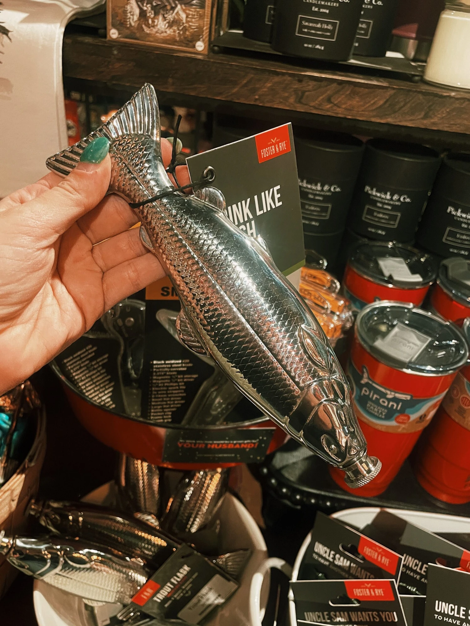 Cast in shimmering stainless steel, our true-to-life trout flask is perfect for anyone who can drink like a fish. Tucking covertly into a backpack or fishing vest pocket, it holds four ounces of any elixir. Really, what better way to get sloshed?.—Accommodates 4 oz comfortably–Tight-fitting cap–Stainless steel–Fishing lovers necessity–