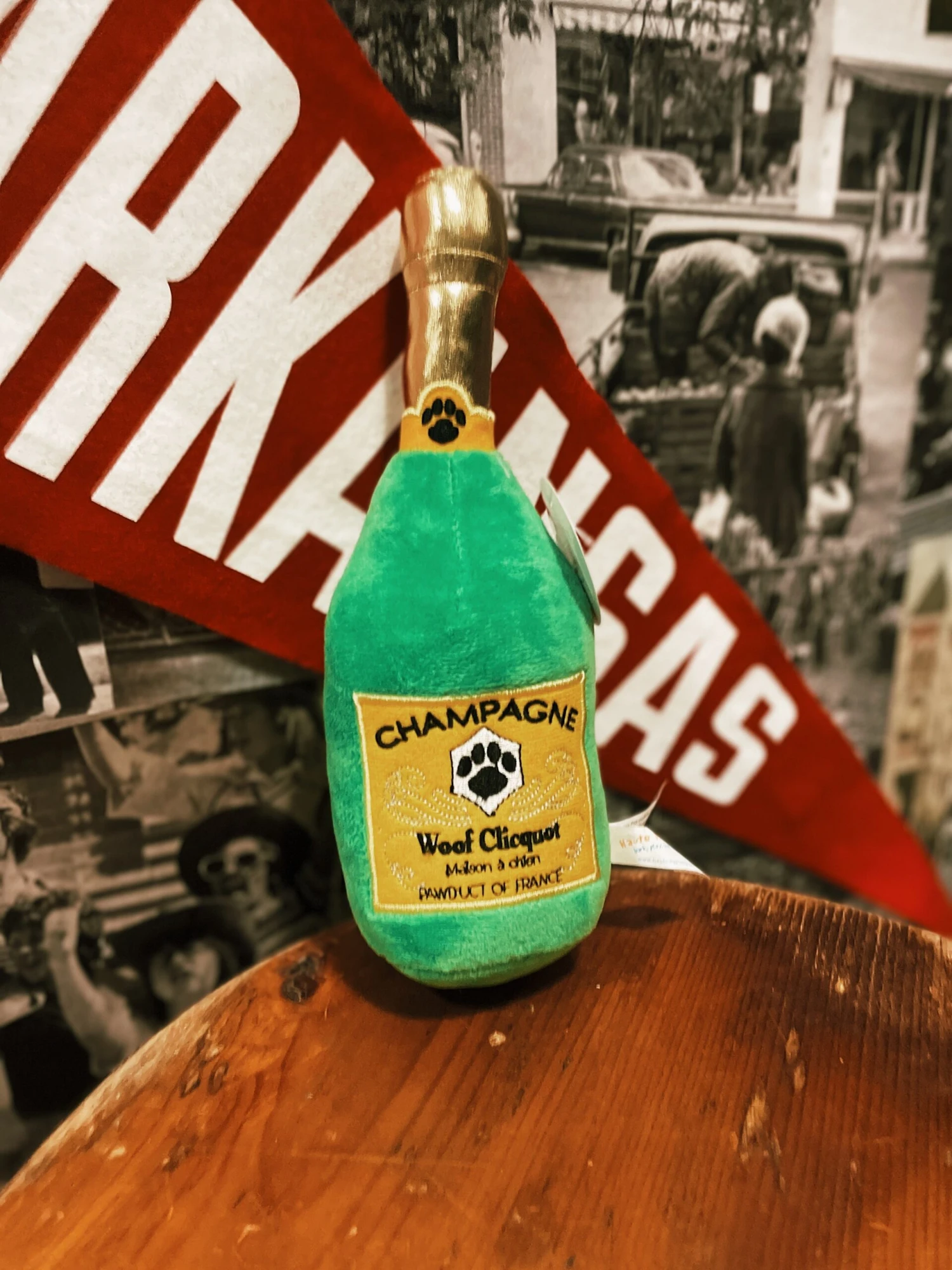 New to our bubbly collection, we introduce our Woof Clicquot Classic! Perfect for any pawty or celebration, Woof Clicquot Classic is made with soft plush with a fun squeaker inside!